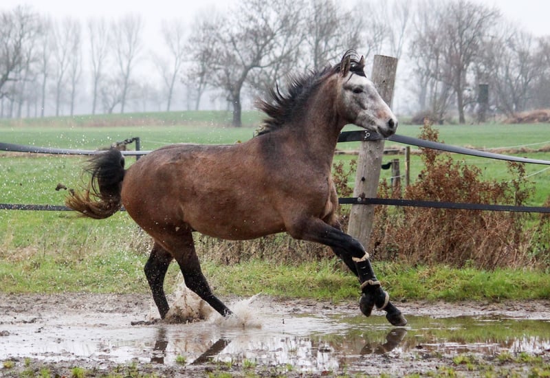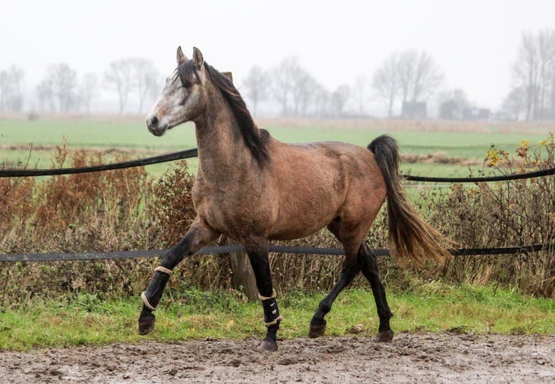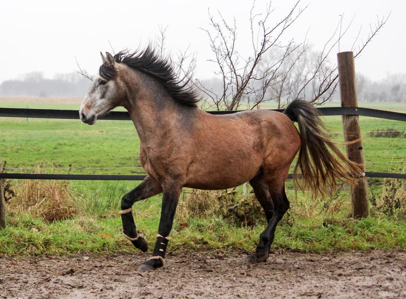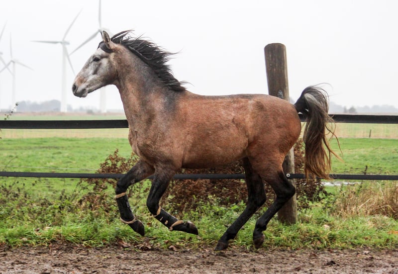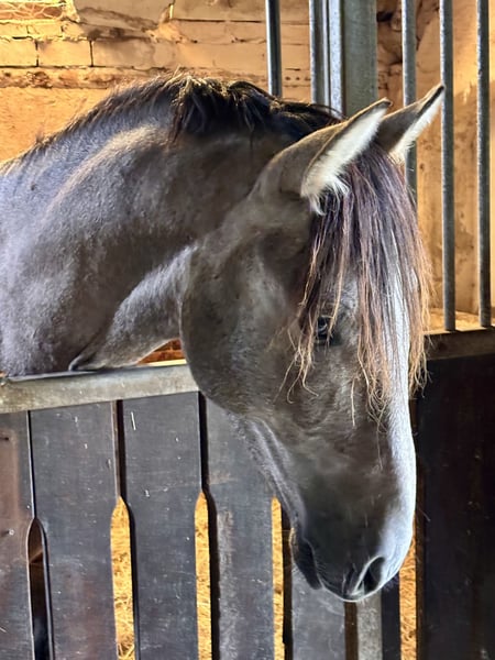 Freixenet has always been a very friendly and outgoing young stallion. Although he is growing up in a herd with six other foals, he is always one of the first to approach us and seek contact. He comes maternally from the Ermitaño line (Escalera), with a touch of Deco, representing the sporty Yeguada Militar line. His sire is Araval Ducal, a stallion bred by us, exhibiting three excellent gaits. Freixenet presents himself as a versatile all-rounder, light-footed with an active hindquarters. Some of his maternal half-brothers are successfully competing in dressage. He should also handle Working Equitation with ease. He comes directly from the breeder, one of Germany’s largest PRE stud farms. As such, he has no history of piroplasmosis, is familiar with turnout, and was raised on high-quality feed.
