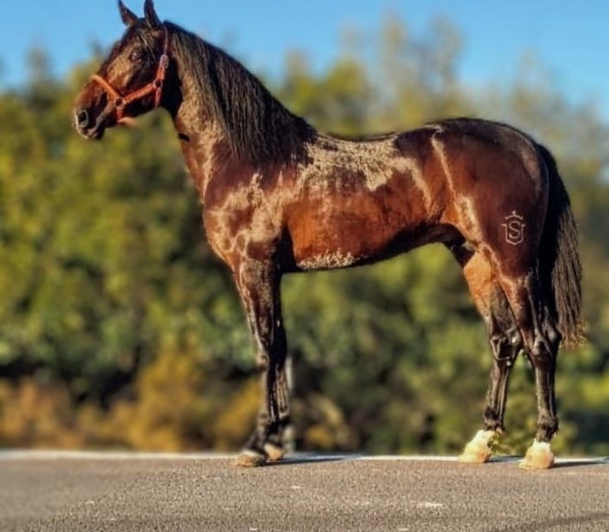 💥 Grandson of Torreluna 💥 This stunning young stallion, with an impressive pedigree and a black-brown coat, is looking for his FOREVER HOME 🏡. He will turn 3 years old in April, and his expected final height is approximately 16.1 hh (around 1.69/1.70 m). Bred from excellent lineage, he is from top-quality upbringing and gentle training will begin shortly. He has a very sweet nature and is very affectionate towards people. A correctly built young horse in the baroque type, with a lot of quality. He is well-behaved when tied up, groomed, and brushed. He also accepts hoof care without issues. He is familiar with the blacksmith and allows trimming. Handling him with a lead rope and halter is also no problem. We see his potential in dressage, working equitation, and leisure riding. Perhaps even for breeding due to his top pedigree 🥰. Anyone looking for a promising, talented young horse will find their ideal partner in him. If you are interested in this handsome young gentleman, please contact me with your phone number so I can get in touch as soon as possible. We are happy to arrange transportation for you 🚛✈️. We have a wide selection of horses, from foals to Grand Prix level competitors. Standard Spain