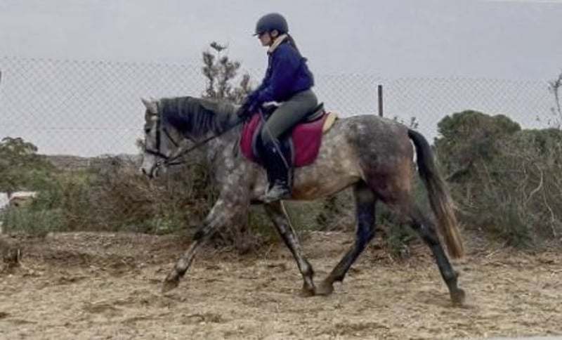 Lo que aporta: Una actitud de trabajo siempre positiva, entusiasmo sin volverse nervioso, disposición para caminar sin ser sensible, estar "encendido" sin una pizca de miedo, una sólida movilidad en los pasos con una potente extremidad trasera y un paso amplio, rítmico y con buen espacio. Hufes de excelente calidad, que, con el cuidado adecuado, no necesitarán herraduras. Un caballo acostumbrado a un trato cariñoso y experto desde el principio. Procedente de una cría responsable con yeguas seleccionadas a mano, todas ellas montadas. Su madre está entrenada hasta la categoría de Gran Premio y transmite esta calidad de manera fiable. Un carácter, en el mejor sentido de la palabra, muy firme: perros, niños, autos, tractores e incluso ejercicios militares no lo alteran. No en vano, su padre Resucitado YM de la Yeguada Militar fue transferido a la Guardia Real, donde es uno de los pocos sementales seleccionados que permanecen tranquilos en medio del mayor bullicio durante tareas policiales. Sus jinetes elogian mucho su comportamiento. Resucitado es hijo del famoso Zedimir II, que en su tiempo fue el primer semental con el calificativo de "Mejorante", un mejorador de la raza. Tanto Resucitado como su nieto Nuar heredaron su potencial de movimiento. Esta línea es conocida por su excelente potencial; un hermano de Zedimir, Vetusto II, es un semental de Gran Premio cuyos descendientes también han tenido éxito. Nosotros mismos tuvimos un hijo de Vetusto de la misma yegua que Nuar, que ganó su primera prueba de doma a la primera. Nuar no le queda atrás a su hermano en potencial, solo es un poco más pequeño (altura final aprox. 1,60 m) y tiene un carácter más tranquilo, como corresponde a un hijo de caballo de policía. Nuar está montado y ha sido preparado a la mano con un entrenamiento clásico adecuado. Prestamos mucha atención a los detalles. Los caballos aprenden a mantenerse tranquilos en la ayuda de subida, a conocer las ayudas y a moverse en las tres aires básicas con equilibrio bajo el jinete. No evitamos influencias ambientales "terribles", como el ruido en el entorno, sino que las utilizamos para mostrar a los potros que el mundo no les hace daño. Y Nuar no se distrae. Su concentración permanece en el jinete. Es muy agradable de montar, suave en la mano y sensible a las ayudas con las piernas, sin ser sobrehipersensible, un alumno ejemplar. Se mueve en las aires básicas de manera correcta y con buen equilibrio para su edad. Ya muestra transiciones muy bonitas. La capacidad de montar también se hereda del abuelo Huy, quien transmitió a sus descendientes su modo de montar, casi como si leyera pensamientos. Por ello, buscamos para Nuar un jinete que valore y siga fomentando sus buenas cualidades. Debido a su temperamento agradable, su agilidad y su galope, lo imaginamos muy bien en la Equitación de Trabajo, pero también en la doma, donde destacaría y aportaría mucho talento y facilidad, incluso para movimientos más difíciles. Y sobre todo: se apoya en una base sólida, correcta, con patas secas, articulaciones bonitas, tendones muy buenos y cascos excelentes, cuidados desde potro. Las mejores condiciones para una vida larga y feliz con su caballo. Quien busque un potro criado en una cría valiosa, saludable y que ha sido seleccionada durante generaciones por esas cualidades como caballo de doma, encontrará en Nuar un compañero para toda la vida. Deseamos para él un jinete que valore y quiera seguir desarrollando sus buenas cualidades. Como es un potro joven, no se vende a principiantes. A petición, puede ser inspeccionado y presentado para la doma en nuestro establo. También es posible la castración. Nuar, de cuatro años, vive junto a un semental de su misma edad, no muestra comportamientos de semental y su trato es totalmente sin problemas; se le ha cortado la crin, sube en el remolque y ya ha realizado sus primeros paseos cortos. Podemos enviar videos bajo silla y en manejo. Nuar puede visitarse en cualquier momento en Andalucía y, si hay interés, probarse en la monta. Con nuestra más de 20 años de experiencia, estaremos encantados de ayudar con los trámites y el transporte.