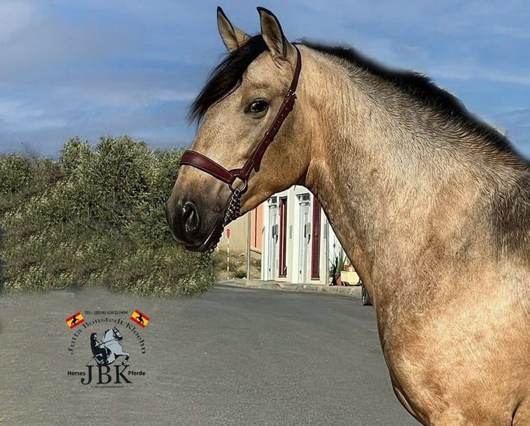 Een absolute blikvanger is deze PRE-hengst. Hij is geboren op 14-04-2022 en is longeerbaar met zadel. Zijn bloedlijn mag er zijn: met Lego van de Yeguada Militar, die zowel gekeurd en gekwalificeerd is als verbeteraar van zijn ras, en Educado X uit de Guardiola-gefokte, een elite-exemplaar van de PRE's. Ook Paco Marti is betrokken. Wie plezier heeft in deze bewegingstalentvolle schat, heeft een geweldig jong paard om op te leiden.