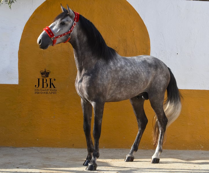 Echt een geweldige PRE lieverd met een uitstekende bloedlijn. Comanche is momenteel 1.6o m groot. Hij is geboren op 23.05.2021. Zijn bloedlijn barst van de uitmuntende exemplaren. Deze bevat enkele door Teodoro Herce gefokte schatten, Yeguada Lovera exemplaren en de elite gefokte Educado X uit het Guardiola fokprogramma. Met Candau en Pallares hebben we beproefde Cartujano-lijnen. Een droomprins, deze geweldige jonge hengst. De superieure PRE komt niet alleen tot uiting in zijn bewegingen, maar ook in zijn karakter. Hij werkt ook heel goed mee, is geïnteresseerd in alles wat nieuw is en is volledig probleemloos in training en omgang. Ingebroken, momenteel 1,60 meter groot.