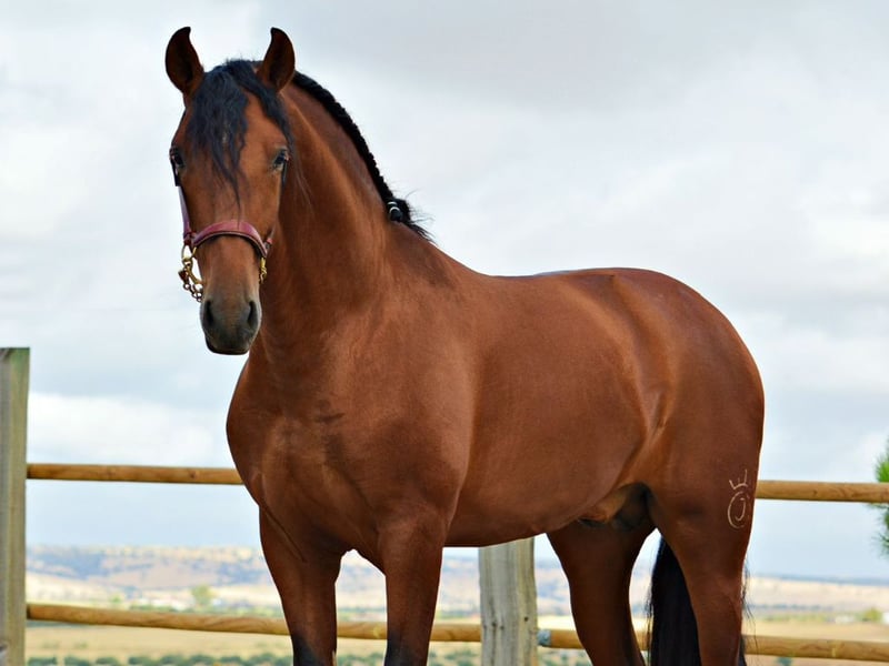 Wir präsentieren einen hervorragenden Pura-Raza-Española-Hengst, geboren im Jahr 2022, mit einem Stockmaß von 168 cm, der durch seine Ausstrahlung, Rassetypizität und ausgezeichnete Zukunftsaussichten überzeugt. Obwohl er aufgrund seines jungen Alters noch nicht angeritten ist, zeigt dieser Hengst bereits eine bemerkenswerte Ausdruckskraft in seinen Bewegungen und eine sehr ausgewogene Konformation – Eigenschaften, die auf eine vielversprechende Entwicklung für die Dressur oder die Zucht hinweisen. Sein Gebäude ist solide und harmonisch, mit einem gut definierten Rücken, einer kräftigen Kruppe und einem korrekt angesetzten Hals, was seine Eleganz und Typizität im klassischen PRE-Modell unterstreicht. Im Trab zeigt er weite, elastische Bewegungen mit gutem Schub, während der Galopp ausbalanciert ist und eine natürliche Versammlungsfähigkeit erkennen lässt. Diese Merkmale, kombiniert mit seinem edlen Charakter und seiner positiven Einstellung, machen ihn zu einer sehr interessanten Wahl für alle, die einen jungen Hengst mit echtem Potenzial und reiner Abstammung suchen. Charakterlich zeigt sich dieser Hengst aufmerksam, brav und leicht im Umgang, was die tägliche Arbeit erleichtert und auf eine positive Entwicklung in der zukünftigen Ausbildung schließen lässt. Zudem ist er piroplasmose-negativ – ein besonders geschätztes Merkmal für den Export und die selektive Zucht – und verfügt über verfügbare Röntgenaufnahmen, die volle Transparenz hinsichtlich seines Gesundheitszustands gewährleisten. Insgesamt vereint dieser junge Hengst Rassetyp, Qualität, Adel und hervorragende körperliche Voraussetzungen und ist damit eine ideale Investition für alle, die ein Pferd mit echtem Potenzial und viel Zukunft suchen.