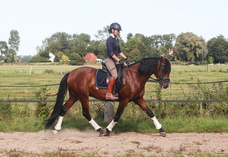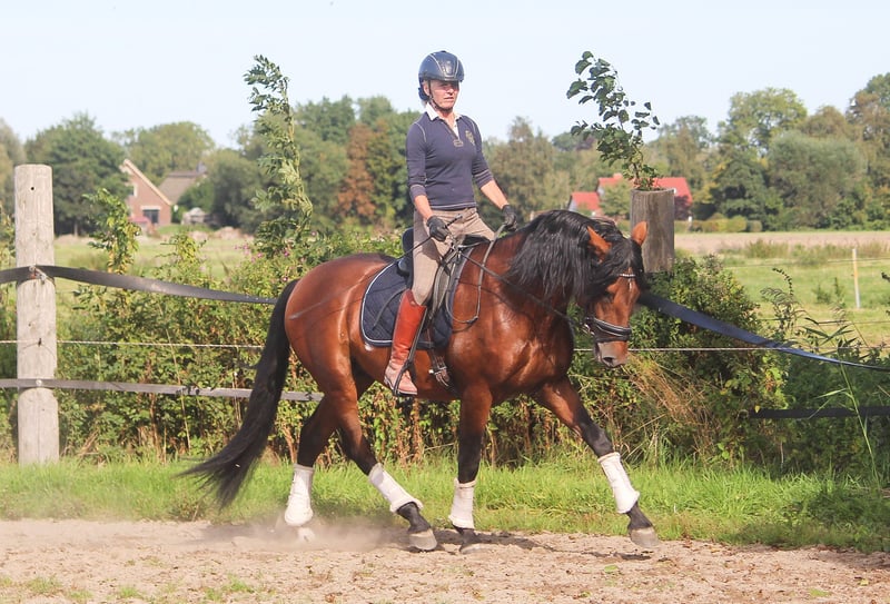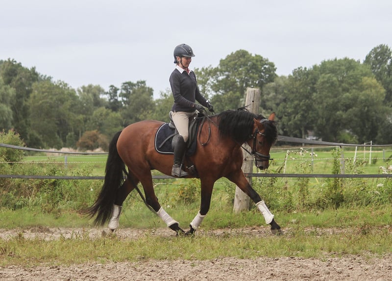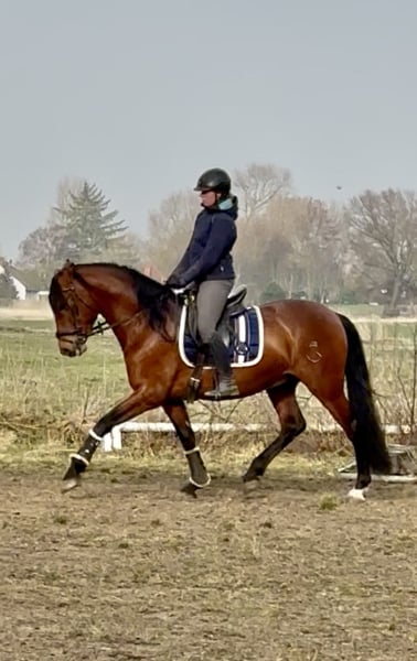 Feliciano Ducal est un véritable eye-catcher. Il possède cette particularité de briller d’un éclat unique, propre aux chevaux ibériques. Il se déplace avec élégance et expressivité. Ses allures de base sont supérieures à la moyenne, avec un pas très ample. Feliciano possède toutes les qualités d’un bon cheval de dressage : cadre, élégance et mouvement. Il a également un caractère exceptionnel, toujours amical. Surnommé "Feli", il affiche un tempérament très équilibré. Il n’est pas nerveux, mais plutôt tranquille. Feliciano provient d’un sang de performance espagnol, sa lignée ne comptant que des chevaux de renom issus de haras prestigieux. Il est donc également très intéressant en tant que futur étalon. Si vous recherchez plutôt un hongre, Feliciano peut être saillie sur place. Né et élevé en Allemagne, Feliciano connaît le pâturage et la vie en groupe. Il n’a jamais eu de mauvaises expériences.