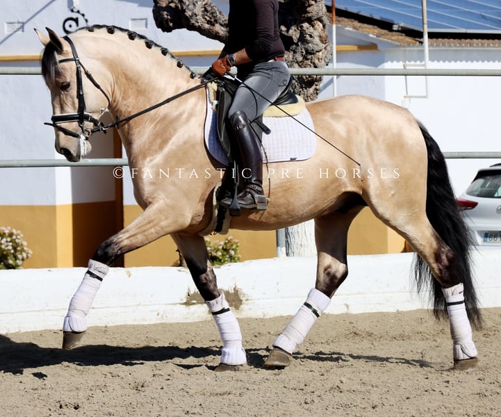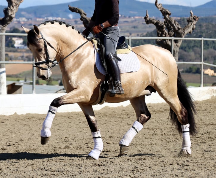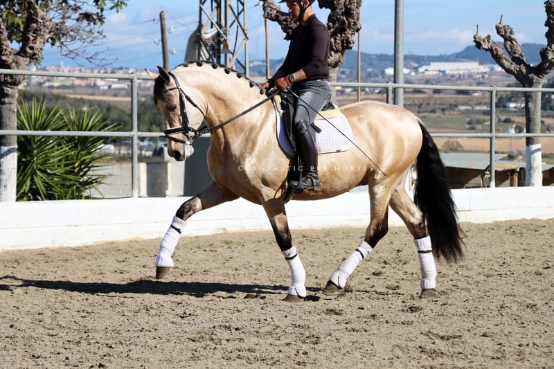 Youngster of pure Spanish breed in buckskin color, a superb mover suitable for future dressage competitions. He possesses innate talent that could be developed to higher levels with excellent training in the future.