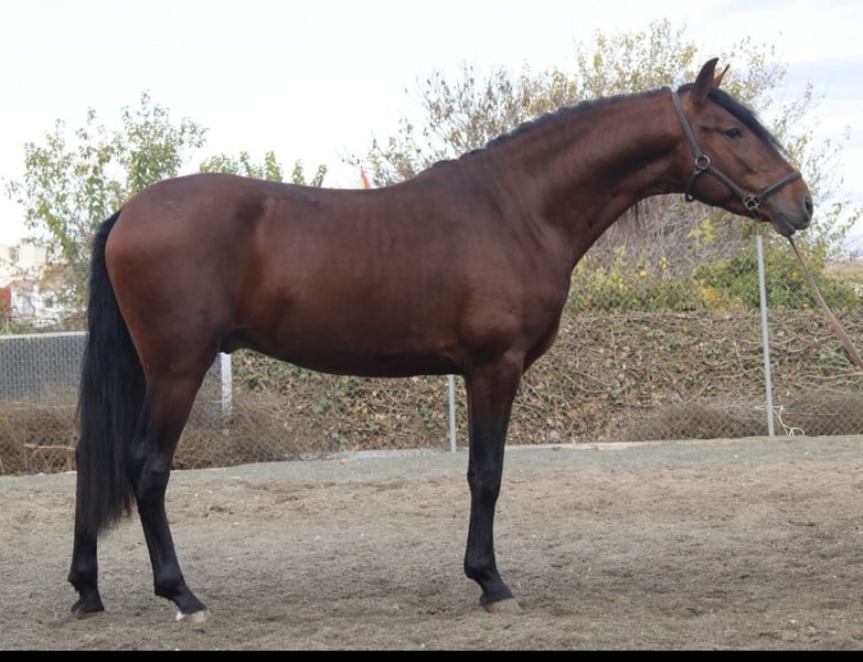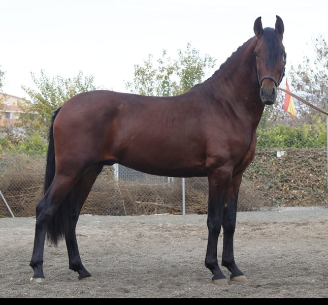 De prachtige PRE-hengst komt rechtstreeks van zijn fokker uit Spanje en zoekt een thuis waar hij verder opgeleid kan worden en de wereld kan verkennen. Hij beschikt over ongelooflijk mooie gangen en zal ooit een sportieve barokke dressuurpaard worden. Hij is nu al een indrukwekkende verschijning in levende lijve! Hij heeft een geweldige uitstraling en weet precies hoe mooi hij is. Hij kan ter plaatse gecastreerd worden (meerprijs van €350). Hij is momenteel 1,63 m hoog, maar groeit nog een stuk door. Hij kan prima overweg met andere hengsten (hij loopt elke dag samen met andere hengsten op de paddock). Wie op zoek is naar een paard om zelf verder op te leiden, zit bij hem helemaal goed. Hij heeft echter een zeer evenwichtig karakter: niet opdringerig, maar wel nieuwsgierig.