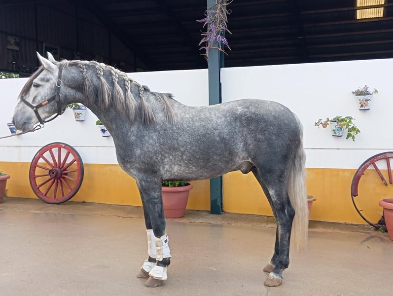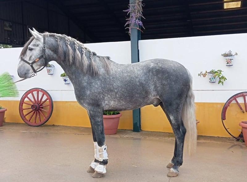 Elfo de Acedo is an attractive PRE stallion, grey, standing at 1.65 m tall, with a spectacular physique. He is well-trained, demonstrating ease in his work and a very positive attitude under saddle. His movements are expansive, expressive, and correct, making him a specimen with potential for both dressage and functional use. His noble and balanced character makes him easy to handle and pleasant in daily interactions, ideal for riders who value safety and confidence. Healthy horse, with good lineage and in top shape. Photos and videos available for serious inquiries.