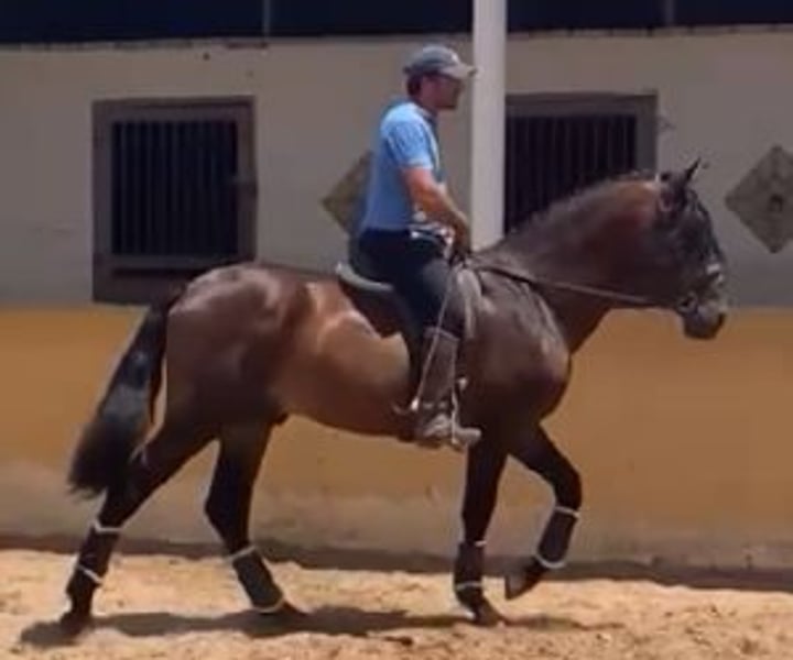 Grandson of Yaco de Torreluna: a young horse who shows promise in dressage There are young horses that you spot right away: their way of moving, their attitude, their intelligence. This one is one of them. Direct grandson of Yaco de Torreluna, one of the most important and improving stallions of the breed, this horse proudly carries the legacy of this elite line. Yaco's descendants are distinguished not only by the quality of their gaits, but also—and this is essential—by their natural elasticity, their great ease of learning and their mental balance. These are horses that judges appreciate, of course, but which especially delight horse riders, because they are a real pleasure to ride. This young horse has inherited all these qualities. He already works well at three paces, yields to the leg and is very receptive in all circumstances. What is most striking is his attitude: he listens, understands what is asked of him and responds calmly, without tension, always with the desire to do well. A horse rider with a minimum of technique can ride him and enjoy him right away: he is not a complicated horse, he does not present any difficulties. He is a partner who supports his horse rider and who offers great potential for development. In terms of dressage, he has all the assets to go far : genetics, body flexibility and remarkable mentality. Outside of the arena, he is just as exemplary: noble, poised, and easy to handle. A horse that will be appreciated on a daily basis, not just under saddle. If you are looking for a horse with great origins, a healthy working base and this attitude which makes each session enjoyable… this young horse deserves your full attention. At IberHorse, we rigorously select the horses we offer, because we know that every horse rider is looking for a horse that really suits them. If this promising young horse interests you, contact us. We will be delighted to tell you more and welcome you for a visit.