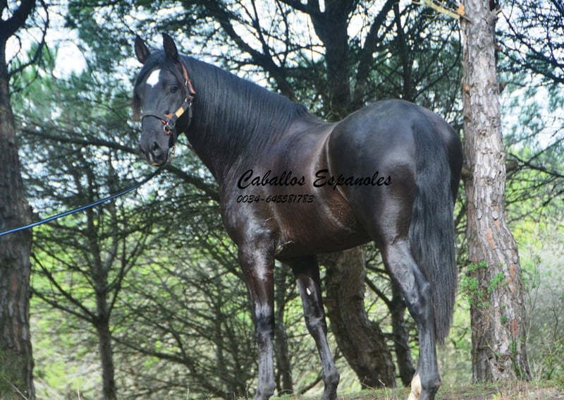 Este semental PRE de gran tamaño tiene una estructura correcta y armoniosa. Siempre asoma su estrella blanca debajo de su pony. En el manejo, es muy tranquilo. Cuando lo sacamos de la caja, pasó sin problema junto a una yegua atada. El semental es muy sociable y le encanta que le acaricien. Siempre está atento y escucha bien. Está en trabajo de longe y conoce la silla de montar, manteniéndose muy relajado. Este joven caballero cuenta con tres excelentes movimientos básicos. Tiene un paso excepcional y un trote muy equilibrado, con buen impulso hacia arriba. Un caballo fantástico para la doma y para la Working Equitation. El caballo se vende en nombre del propietario. Puede permanecer en nuestro establo para su entrenamiento adicional. Se organizará una evaluación clínica en breve. Transporte internacional disponible.