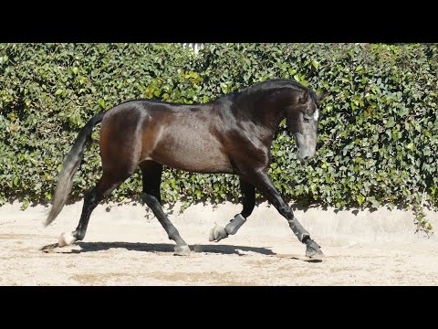 Judio ist ein großer, besonderer PRE. Er hat einen eleganten, edlen und gleichzeitig athletischen Körperbau. Er ist jung, aber man erkennt bereits eine typisierte, barocke Morphologie. Ein Dressurpferd mit gut proportionierten Gelenken und drei sehr klassischen Gangarten. Sein Charakter ist ausgeglichen und selbstbewusst. Unserer Meinung nach ist er ein echtes Dressurprojekt für Amateure oder Profis. Man sollte ihn abwarten und beobachten, wie er sich entwickelt. Er wird uns überraschen! Ursprünge im Dressursport: Senillosa.