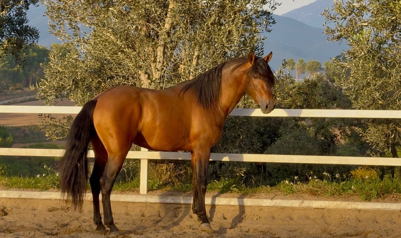 Kans om een prachtig paard aan te schaffen! Te koop aangeboden: een mooie PRE-ruin, geboren in 2021. Met een kastanjebruine vacht en een stokmaat van 1,59 m, ideaal voor wie op zoek is naar een paard met uitstraling en elegantie. Gespecialiseerd in dressuur, valt dit paard op door zijn nobele karakter en uitstekende bereidheid tot training en competitie. Mis deze kans niet om te beschikken over een paard van uitzonderlijke kwaliteit. Voor meer informatie, neem gerust contact met ons op.
