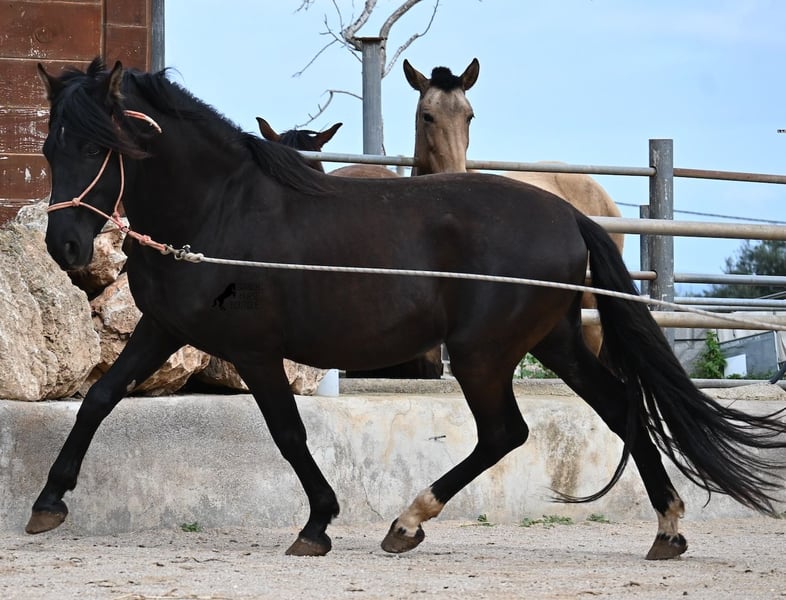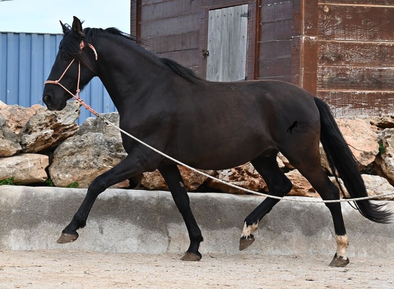 Casi ningún semental ha logrado tanto éxito y tanta fama como POETA DE SUSAETA como caballo de doma español. Y este es el padre de este hermoso ejemplar de tipo barroco, que claramente también ha heredado buenas cualidades en movimiento. Este semental de pura raza española, nacido en verano de 2021 (andaluz con certificado de raza de la ANCCE), cuenta además con una excelente línea materna. En su ascendencia encontramos al semental Mejorante NERO II y al semental de élite Inedito, ambos grandes referentes en el mundo de la doma del caballo español. Aunque su linaje es muy deportivo, este joven es compacto y de tipo barroco, lo que lo hace aún más especial. Además, su hermoso pelaje negro y sus ojos dulces, ¿qué más se puede pedir? Aún NO ha sido montado, ya que para el criador es importante que sus caballos tengan tiempo para crecer sin ser sobrecargados. Esto se refleja en su carácter: es muy amigable, tranquilo, cariñoso y un auténtico caballero. Está aprobado y ya tiene descendencia, vive una vida soñada: ¡libre las 24 horas del día, junto a su potrillo y la madre! Una oportunidad muy interesante para criadores, no solo por su ascendencia, sino también por su color. Y para quienes buscan un compañero de equitación en la modalidad de ocio, aún sin estrenar. Actualmente mide 1,59 m y seguirá creciendo. Camina descalzo, vive en un sistema de manejo robusto y existe la posibilidad de que sea castrado y/o se le inicie en el trabajo en el lugar. Actualmente está en Mallorca. Videos y pedigrí disponibles a petición. Un caballo de primera a un precio muy justo. Con gusto puedo organizar en la finca una evaluación de aptitud, entrenamiento, transporte o incluso su traslado, si desea venir a verlo en persona. Para más detalles, consulte mi página o contactarme directamente. Saludos desde España