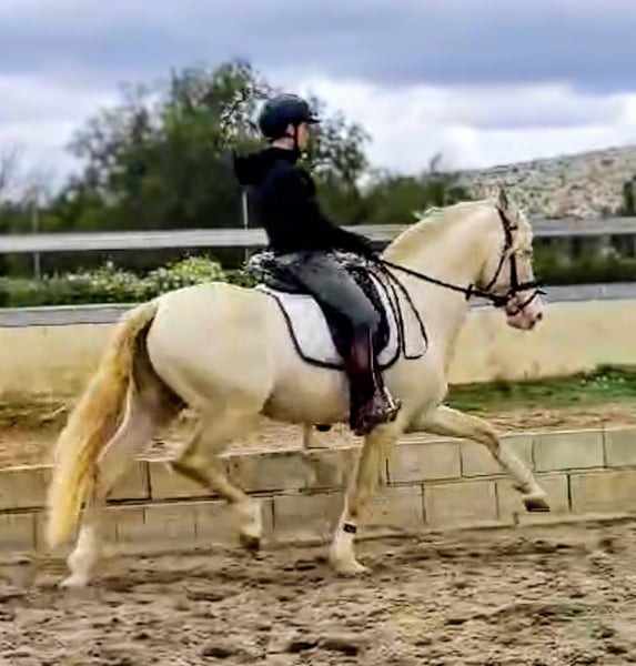 Dieser wunderschöne PRE Hengst, möchte gern in sein FOR EVER HOME vermittelt werden...🏡 Mit seinen 5 Jahren und einer Größe von derzeit 1,60 m, ist er die perfekte Wahl, für Leute die keine so großes Pferd wollen. Yellow hat einen überragend lieben Charakter und ein unheimlich angenehmes Temperament. Unarten jeglicher Art,sind ihm ein Fremdwort. Bisher zeigt er keinerlei Hengstmanier. Der schöne Gentleman hat wunderschöne weiche und elastische Bewegungen und ist sehr gut geritten. Großes Talent zeigt er in der Dressur und zeigt bereits Lektionen wie Piaffe und Passage. Er ist sehr lernwillig und findet es sehr interessant im Gelände unterwegs zu sein. Im täglichen Umgang ist er ein wahrer Schatz - gut erzogen und sehr freundlich zum Menschen,ist er für seinen weiteren Weg als super Nachwuchspferd bereit. Er ist ein top Junioren Pferd,aber auch für anspruchsvolle Reiter, lässt er keine Wünsche offen Aufgrund seiner Farbe,ist es empfehlenswert über eine Körung nachzudenken,kann aber auch auf Wunsch vor Ort gelegt werden. Er bringt Röntgenbilder ohne Befund mit. Wem dieser liebenswerte und bildschöne junge Mann gefällt, meldet sich bitte mit Telefonnummer, damit ich schnellstmöglich Kontakt zu Euch aufnehmen kann. Sehr gerne arrangieren wir den Transport für Euch 🚛 Standort Spanien Nähe Sevilla Wir haben eine große Auswahl an Pferden aller Kategorien. Vom Fohlen bis zum Gran Prix Kracher, ist alles vertreten. Auch Sonderfarben wie Palomino und Buckskin .