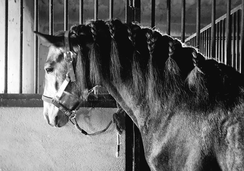 Baroque young stallion in a small format! He continually amazes with his impressive, large movements. He is currently being prepared for backing, is well lunged, is already familiar with the saddle, and shows great composure and curiosity towards everything new. The price will increase with further training. He is very social, well-mannered in handling, and not stallion-like; he stands in a large paddock box next to another stallion. He will surely grow to be quite baroque with a lot of mane. Pictures of the parents are available. He can be viewed on-site and can also stay with us for further training. For serious inquiries, we look forward to your message via email or WhatsApp.