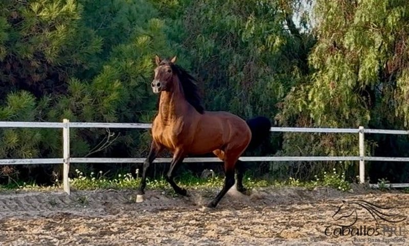 Tormento ist ein 1.59 m großer,mit hervorragenden Bewegungen ausgestatteter, PRE Hengst. Er ist geboren: 07/2021 Er hat einen ganz tollen, sehr liebevollen Charakter und mag es sehr wenn seine Menschen sich mit ihm beschäftigen. Er kennt Sattel und Trense und wird in kürze angeritten. Bei der Arbeit mit Sattel und Trense zeigt er sich sehr unbeeindruckt und macht alles ganz brav mit. Er ist immer kooperativ und vertraut seinen Menshen. Er zeigt im Stall keinerlei Hengstmanieren. Auf Wunsch könnte er aber selbstverständlich noch vor Ort gelegt werden. Er wäre sicher auch für die Working Equitation sehr interessant, aber natürlich auch für den ambitionierten Dressur oder Freizeitreiter. Wenn Sie weitere Informationen zu ihm wünschen setzen Sie sich bitte telefonisch mit uns in Verbindung. Weitere Videos senden wir sehr gerne nach einem persönlichen Gespräch. Bitte haben Sie Veständnis dafür das wir anonyme Anfragen nicht beantworten. Tranpsort kann Weltweit organisiert werden. Besichtigung, nach Terminabsprache, jederzeit möglich.