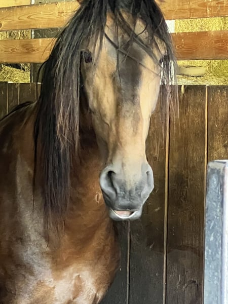 Elegant Baroque stallion, born in 2021, with impressive presence and great potential. The buckskin impresses with his harmonious conformation and noble appearance. Standing at 170 cm (16.1 hh), he combines classic Baroque lines with an appealing size that is suitable for both breeding and sport. He already achieved excellent results at the licensing at the age of three. He possesses three outstanding basic gaits, with the canter being particularly remarkable. He has already been saddle-broken. His robust constitution, balanced temperament, and elegant appearance make him an ideal partner for ambitious breeders or riders who value quality and character. A horse with great potential for breeding as well as for high-level competitive riding. For further information and a personal impression, I am happy to provide additional details.