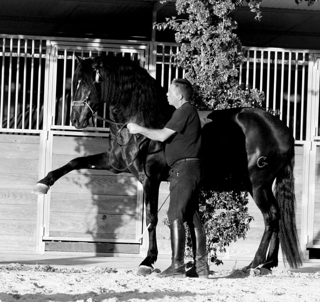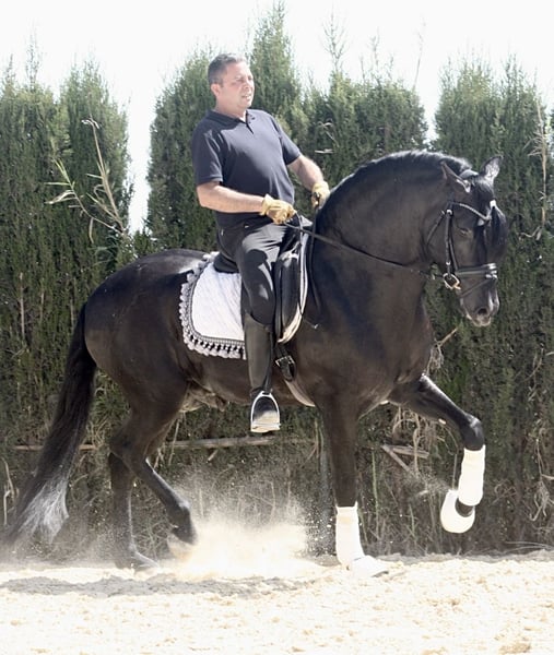 Eccezionale esemplare per cavallerizzi esigenti: splendido castrone di razza famosa, correttamente montato con redini, in fase di avviamento alla piaffe e passo spagnolo in mano, senza maniere da stallone e estremamente dolce nel rapporto. Su richiesta può essere castrato. Röbis disponibile!