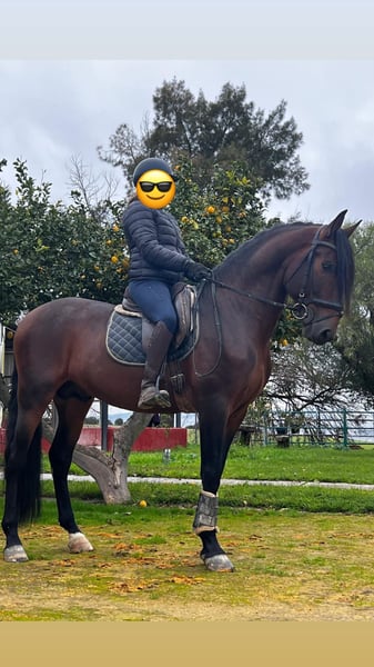 He is a (soon-to-be) 5-year-old bay PRE stallion with classic type and an expressive presence. He stands out for his harmonious conformation, good proportions, and the typical nobility of the Pura Raza Española. The stallion is backed and under saddle, showing himself to be calm, cooperative, and people-oriented. He works willingly, is pleasant to handle, and has a well-balanced temperament. In daily handling, he is uncomplicated and friendly. He is ideally suited for riders looking for an honest, quiet PRE — whether for further dressage training or for leisure riding. A charming young stallion, who impresses both with his character and his appearance. Directly from his breeder. Mother can be visited as well and half brother is located in Switzerland. 📍 Location: Spain 📞 Further information gladly upon personal inquiry (English, German or Spanish).