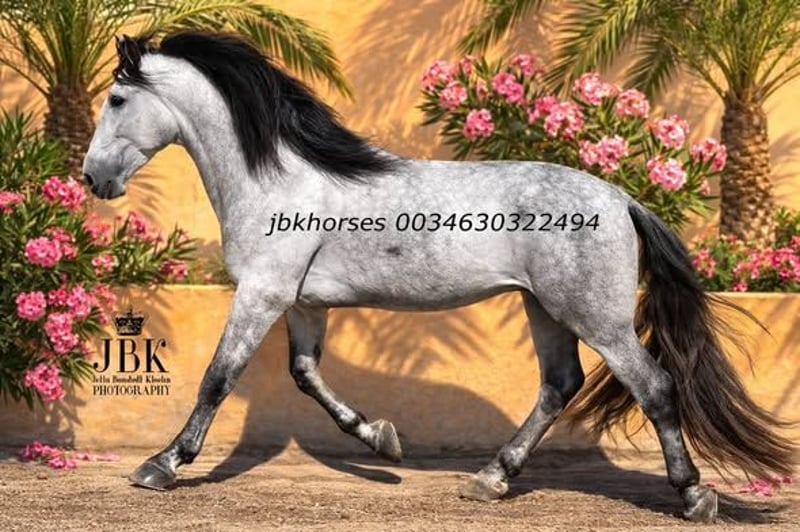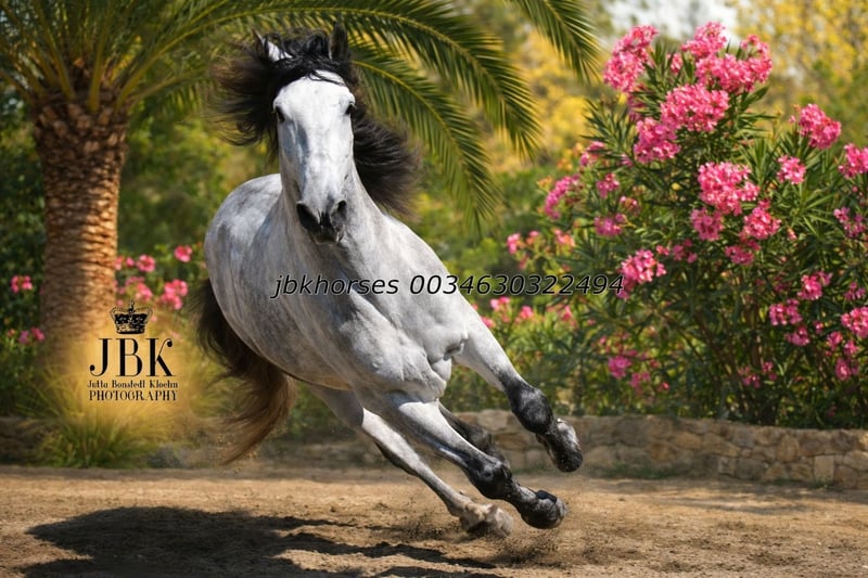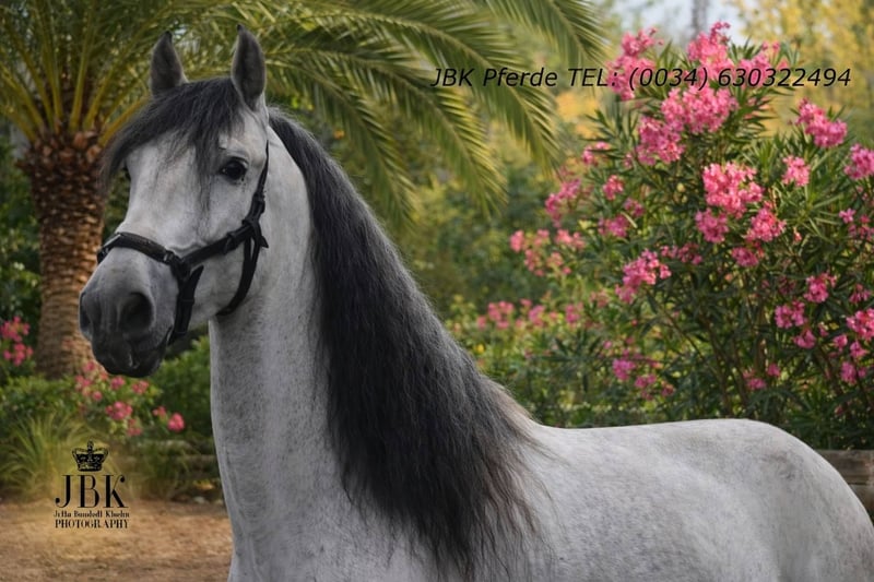PRE semental Abogado Arcos was born on May 16, 2021. He was raised in a herd and was backed at the age of three. He is now reliably and confidently ridden in all gaits. He is also familiar with short local outings. A horse that works solidly and seriously. You cannot expect any nonsense from him, as his name stands for sovereignty. Abogado is a grandson of the elite breeding stallion EDUCADO X, from the Guardiola bloodline, with further lineage including Miura, Novales, Bariain, Muñoz, and Terry, completing the pedigree perfectly.