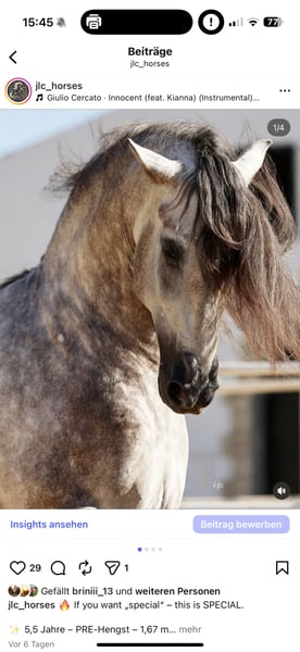 🔥 If you want „special“ – this is SPECIAL. ✨ 6 Jahre – PRE-Hengst – 1,68 m ✨ hochwertige Abstammung – modern & barock zugleich ✨ zero stallion behavior → safe for kids ✨ Ein 11-jähriges Mädchen reitet ihn ✨ alleine, in der Gruppe, im Gelände – völlig unkompliziert ✨ AKU klinisch & röntgenologisch durchgecheckt ✨ pirofrei Sein Bewegungsablauf? Elegant, kraftvoll, geschmeidig – effortless beauty. Sein Temperament? 𝘊𝘰𝘰𝘭 𝘩𝘦𝘢𝘥, 𝘣𝘪𝘨 𝘩𝘦𝘢𝘳𝘵 – 𝘩𝘦‘𝘴 𝘵𝘩𝘦 „𝘨𝘰𝘭𝘥𝘦𝘯 𝘵𝘺𝘱𝘦“ 𝘺𝘰𝘶 𝘤𝘢𝘯‘𝘵 𝘧𝘪𝘯𝘥 𝘰𝘧𝘵𝘦𝘯. Sein Handling? Klar, freundlich, ehrlich – ein Pferd, das Vertrauen schenkt, bevor man darum bittet. 💫 𝐑𝐞𝐚𝐝𝐲 𝐭𝐨 𝐦𝐞𝐞𝐭 𝐚 𝐩𝐫𝐞𝐜𝐢𝐨𝐮𝐬 𝐩𝐞𝐫𝐟𝐨𝐫𝐦𝐚𝐧𝐜𝐞 𝐩𝐥𝐨𝐲𝐚𝐥𝐭𝐲? Dann lass dich von ihm live umhauen. 📩 Besuch jederzeit möglich.