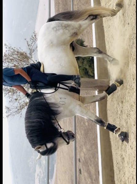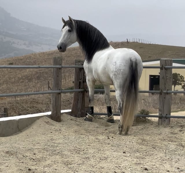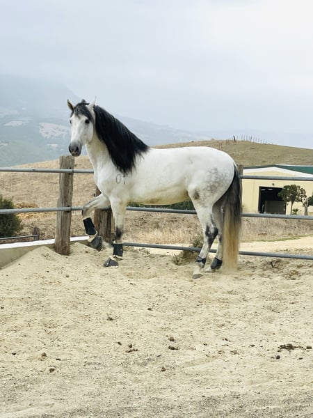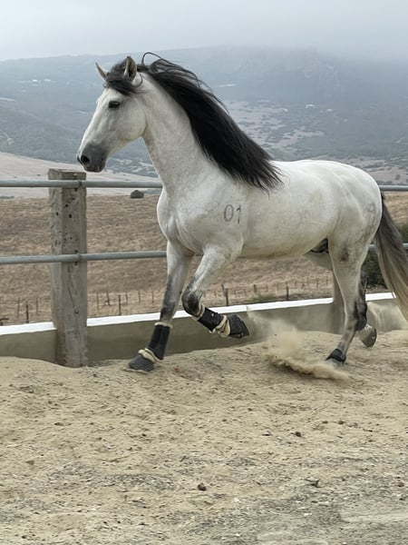 I would like to introduce you to this magnificent 5-year-old PRE stallion, "Ringo." Standing at 17.2 hands, he is a very tall representative of his breed, yet he retains a classic baroque type! With his beautiful conformation, long dense mane, and commanding presence, he embodies the image of the traditional PRE. One of his most remarkable qualities is his affectionate nature. The stallion is very people-oriented, friendly, and well-mannered. Ringo has been gently trained in the three basic gaits and is very eager to learn under saddle. His movement is impressive, and he consistently strives to perform correctly. I know the stallion personally! He is currently located with a friend in Andalusia/Tarifa. All horses from this line are known for their loving temperament. They are very attached to humans and exceptionally well-behaved. Castration on site is possible. Transport can be arranged upon request. Please feel free to contact me if you have any questions!