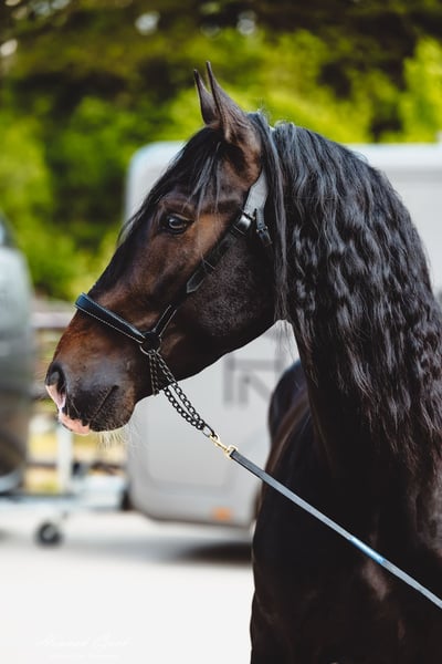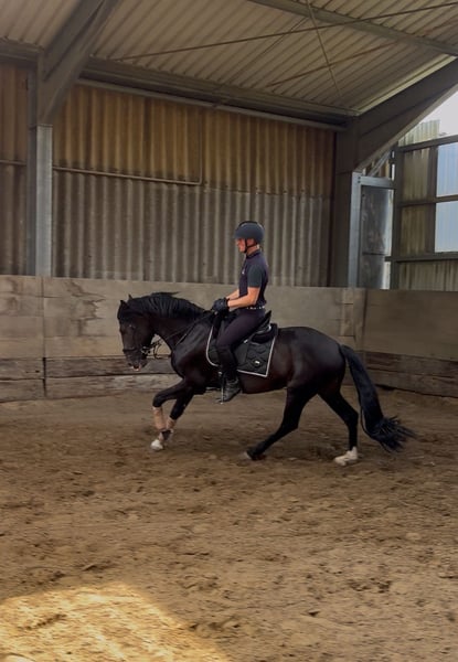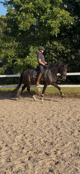 Leon Olivares is equipped with a very good walk and a strong uphill canter. He is very resilient and fearless. In communication, he is always very gentle. Leon is very people-oriented and will do anything for someone he knows and loves. Additionally, he is highly motivated and eager to learn, both under saddle and in ground work (his initial piaffe work in hand shows great talent). He has no vices. Loading onto a trailer and hoof care are also trouble-free. He is not safe around electric fences. Currently, he is in a mixed stable, although no mares are housed directly next to him. Handling on the farm and riding in the indoor arena with other horses are no problem. He is an absolute dream, imported by me at the age of two. Unfortunately, I have to admit that I simply do not have enough time for him, and as a single horse, he is better off in a more suitable environment. Leon will only be placed in species-appropriate housing, meaning he must be able to go outside for several hours daily. I intentionally started to get him used to the rider only at age five, and he has been in training with Niko Falk in Hilden near Düsseldorf for a few months now. He can also be visited there. I could also see Leon excelling in breeding, as he has excellent papers and is already approved. For the well-being of the horse, we charge a fee of €30 for a trial ride, which will be deducted from the purchase price if he is sold. Upon request, Leon can also be castrated at a nearby clinic. In this case, I am willing to offer a small discount on the price.