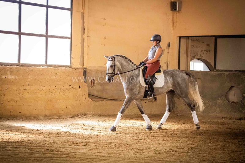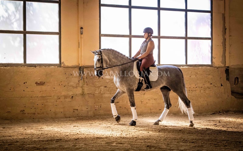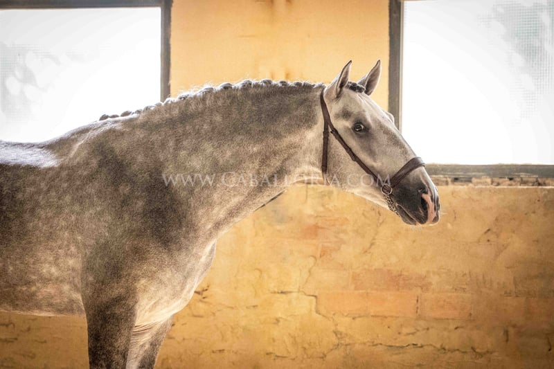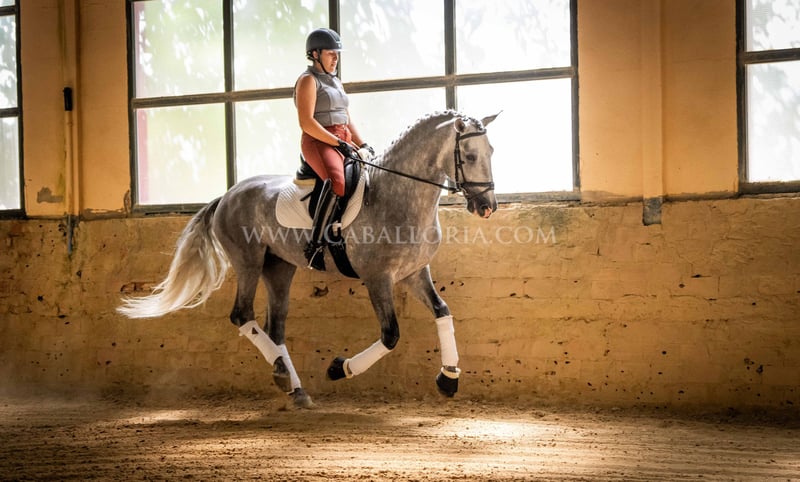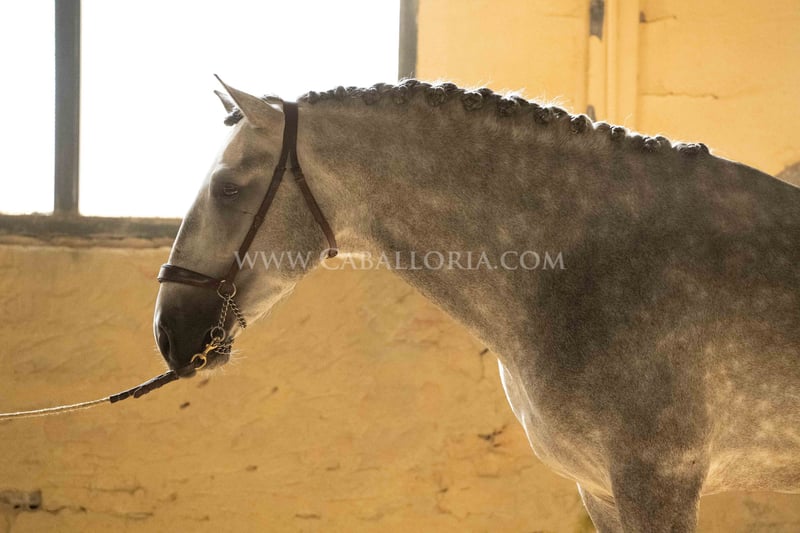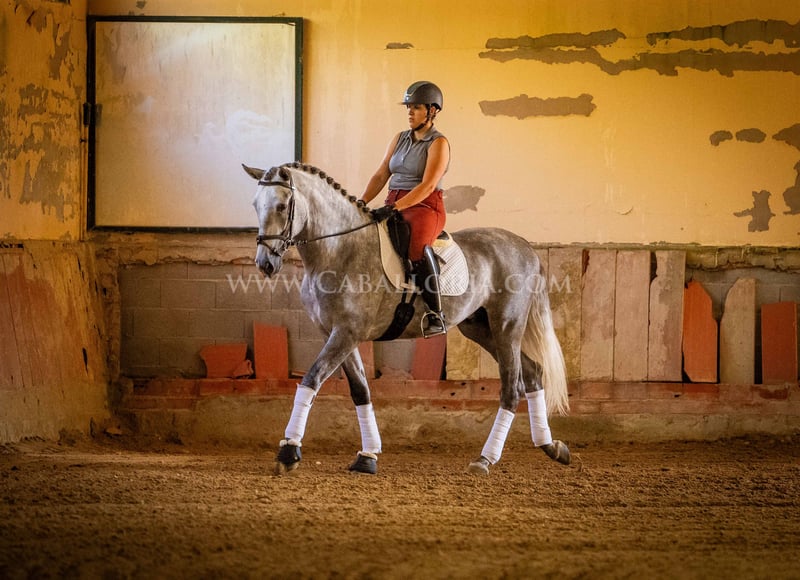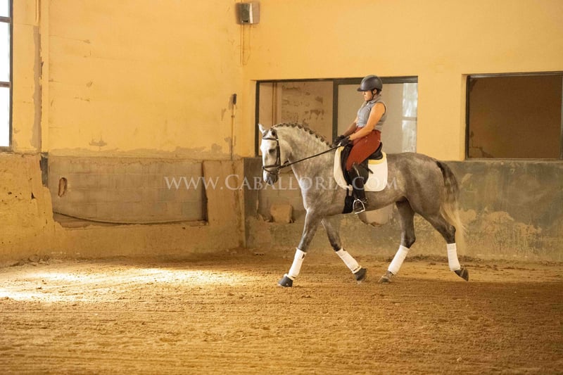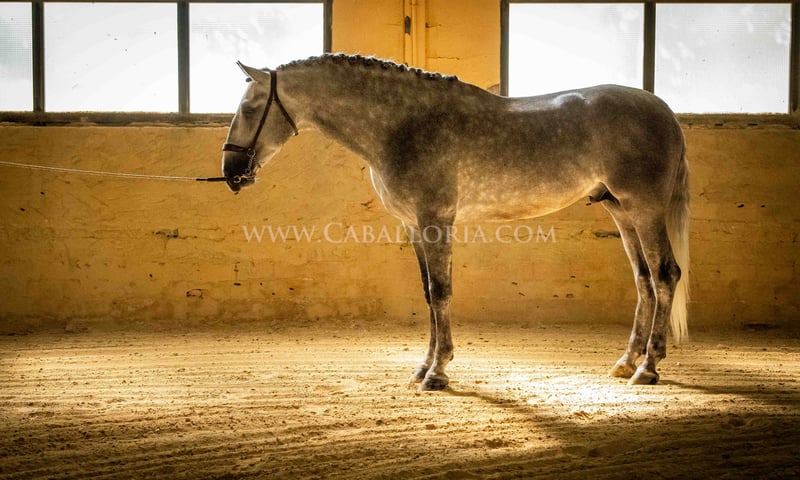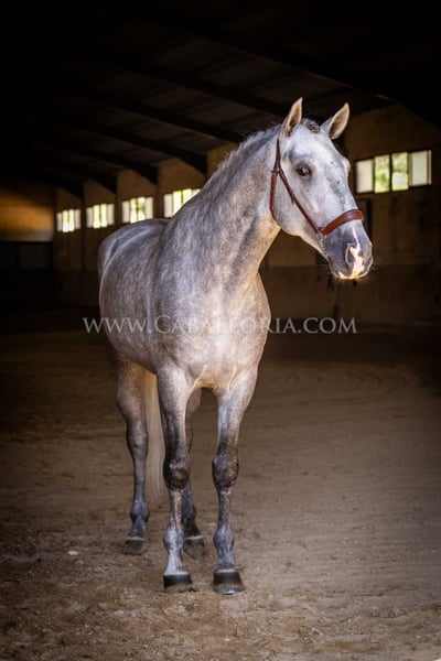 Name: Soimo Date of Birth: 08.06.2020 Height: 1.67 m Training Level: Level 2 ANCCE Classification: Reproductor básico (approved) Soimo is a young and promising PRE stallion with a height of 167 cm. He has an absolutely lovely and uncomplicated character, making him an ideal partner for everyday life. Despite his young age, he has already gained some competition experience, achieving an impressive 70%. Soimo is approved and is currently in training at Level 2 (E), with great potential for the future. More information available upon request! *All visual content, including photos and videos presented by Caballoria S.L., is protected by copyright. This means that reproduction, distribution, exhibition, or any use of these materials without the express written consent of Caballoria S.L. is strictly prohibited. Copyright ensures that creators retain control over their works and are appropriately recognized and compensated for their use.