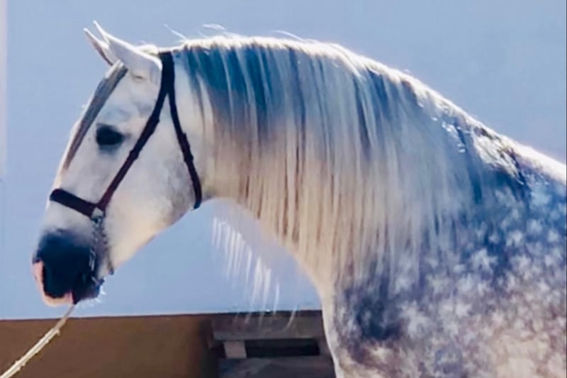 Outstanding PRE stallion born in 2020, boasting some of the most reliable and renowned bloodlines in the Spanish horse world. He is a horse to keep forever and compete at higher levels, thanks to his exceptional movement quality and prestigious lineage. He is truly a WIN TO WIN. Standing at approximately 1.70 meters (16.1 hh) and still growing, as he is just a big baby. He is working towards higher levels with eager and willing behavior, always giving his best to please the rider and owner. Suitable for all the family, including children and adults. This is a horse that enjoys being around people, with no bad habits or vices to worry about. He is progressing very well in basic training, demonstrating smooth transitions, an easy disposition to work, lateral movements, half passes, extended trot, piaffe, and collection—all of which are his strong points.