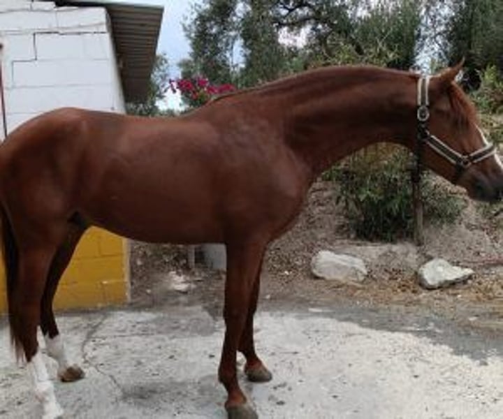 n ideal companion for training and walks. This chestnut horse is a real charm. He has such a sweet character that he lets himself be done without hesitation. His serene attitude is perfect for a horse rider who seeks to enjoy the experience without rushing or tension. He is young, but his way of being brings you a calmness that makes everything easier and more relaxed, whether during walks or the first dressage lessons. What really sets him apart is his ability to adapt. He is the kind of horse that, with his affectionate and obedient nature, makes you feel accompanied at every step. If you are looking for a manageable, reliable companion with a big heart, this chestnut is for you. At IberHorse we select horses with exceptional character that are truly worth the investment. If you think this one fits what you're looking for, let's talk.