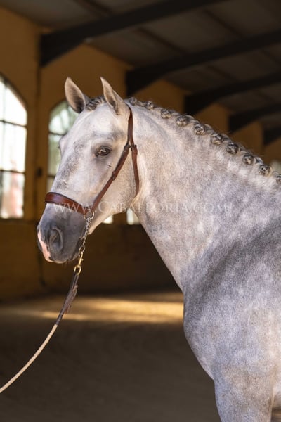 Name: Soimo Date of Birth: 08.06.2020 Height: 1.67 m Training Level: Level 2 ANCCE Classification: Reproductor básico (approved) Soimo is a young and promising PRE stallion with a height of 167 cm. He has an absolutely lovely and uncomplicated character, making him an ideal partner for everyday life. Despite his young age, he has already gained some competition experience, achieving an impressive 70%. Soimo is approved and is currently in training at Level 2 (E), with great potential for the future. More information available upon request! *All visual content, including photos and videos presented by Caballoria S.L., is protected by copyright. This means that reproduction, distribution, exhibition, or any use of these materials without the express written consent of Caballoria S.L. is strictly prohibited. Copyright ensures that creators retain control over their works and are appropriately recognized and compensated for their use.