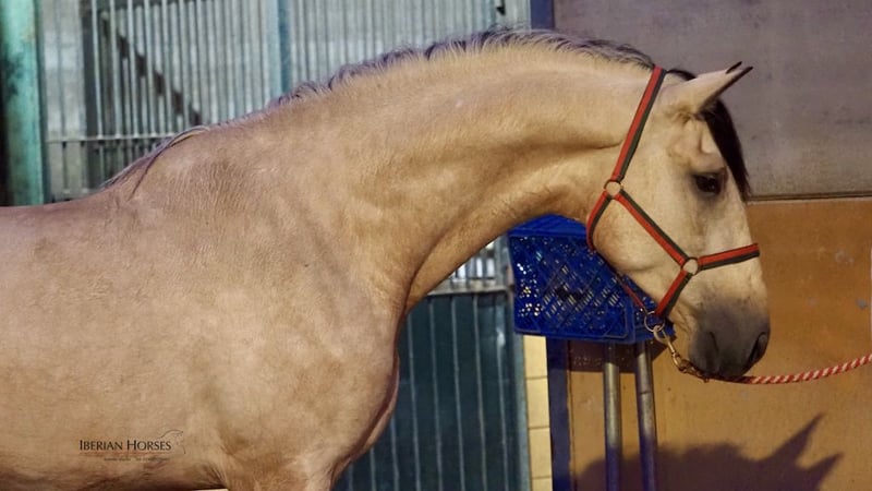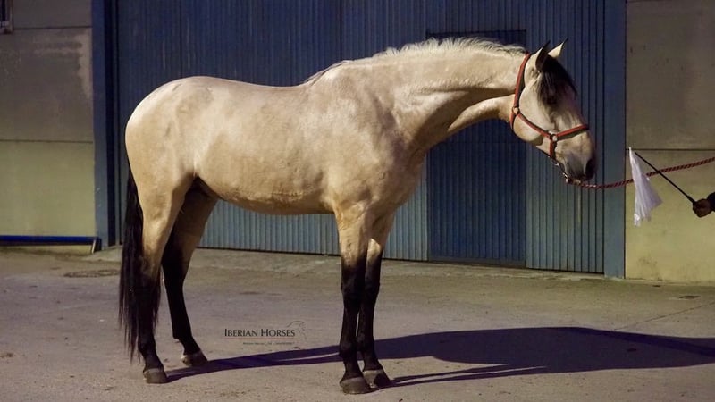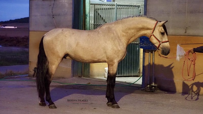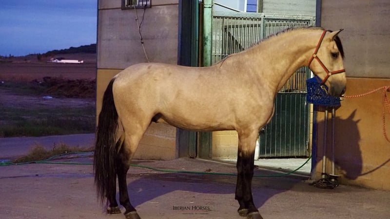 Si eres un enamorado de la línea del prolífico semental palomino, Tiziano, te ofrecemos la oportunidad de adquirir un excelente caballo español bayo libre de piro que es nieto de este fabuloso caballo español. Descendiente de este semental palomino, este joven caballo nacido en 2020, y con una altura de 178 cm, es un ejemplar de gran carácter y fantástico corazón , un caballo muy manejable. Con doma básica, su bonito color bayo y lo impresionante de su morfología, son características difíciles de encontrar en un caballo de esta capa. Creemos que este joven semental bayo tiene todos los ingredientes necesarios para en el futuro ser un excepcional semental para doma. Libre de piro, este caballo español está dispuesto para viajar a cualquier lugar del mundo.