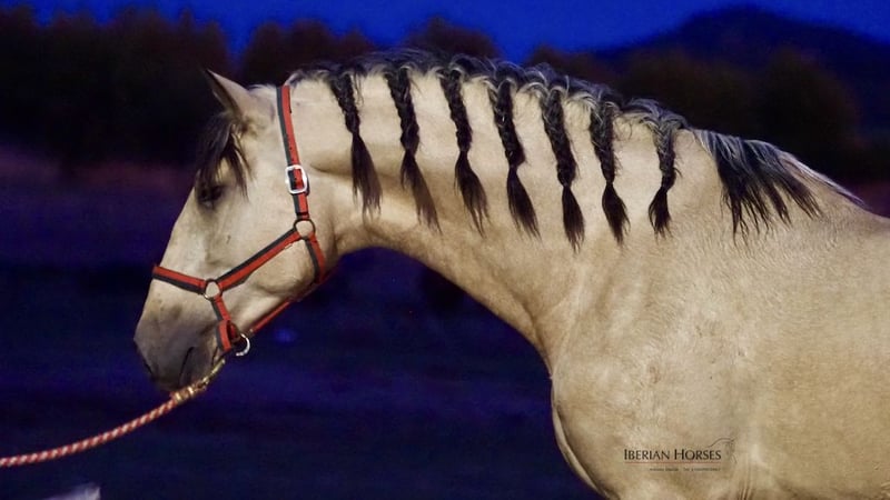 If you are a lover of the line of the prolific palomino stallion, Tiziano, we offer you the opportunity to acquire an Excellent Spanish Buckskin horse free of piro that is the grandson of this fabulous Spanish horse. Descendant of this palomino stallion, this young horse born in 2020, and with a height of 178 cm, is a horse of great character and fantastic heart, a very manageable horse. With basic dressage, his beautiful buckskin colour and his impressive morphology are characteristics difficult to find in a horse of this coat. We believe that this young buckskin stallion has all the necessary ingredients to be an exceptional dressage stallion in the future. Piro free, this Spanish horse is ready to travel anywhere in the world.