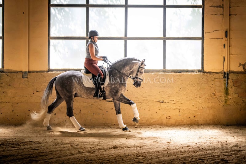 Name: Ziago Born on: 24.05.2019 Height: 1,62 m Training level: Level 3/4 ANCCE classification: Reproductor básico (licensed) Ziago is a cooperative and uncomplicated PRE stallion who is perfect for young riders thanks to his pleasant nature. At 1.62 m tall and trained to level 3/4, he is a reliable partner, whether in training or in everyday handling. His calm and balanced nature makes him particularly interesting for female riders who value a safe and easy-to-handle partner, both in dressage and leisure riding. Information on request! *All visual content, including photos and videos, presented by Caballoria S.L. are protected by copyright. This means that the reproduction, distribution, exhibition or any use of these materials without the express and written consent of Caballoria S.L. is strictly prohibited. Copyright law ensures that authors retain control over their works and are appropriately recognized and compensated for their use.