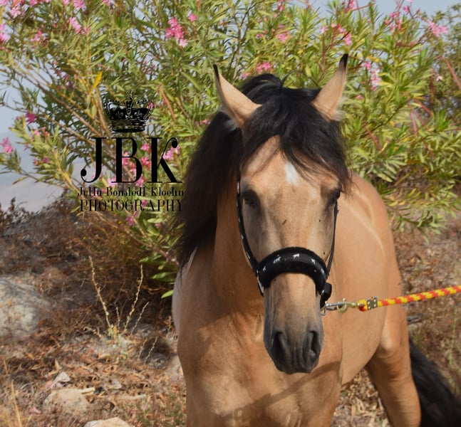 PRE stallion YAKI de VIÑUELA was born on August 13, 2019. He comes from good breeding lines: Carmelo II Paco Marti Barroca IV from the Hermanos Marti Verdia breeding. His grandfather is Marisco XII - also from the Hermanos Marti Verdia breeding. In terms of character, he is very sweet, still shy, and by no means a daredevil. In the herd, he currently tends to be more submissive rather than pushing forward. A likeable young horse. Current height is 1.60 m - he was started under saddle last summer and now goes solidly in the basic gaits and also enjoys turning corners.