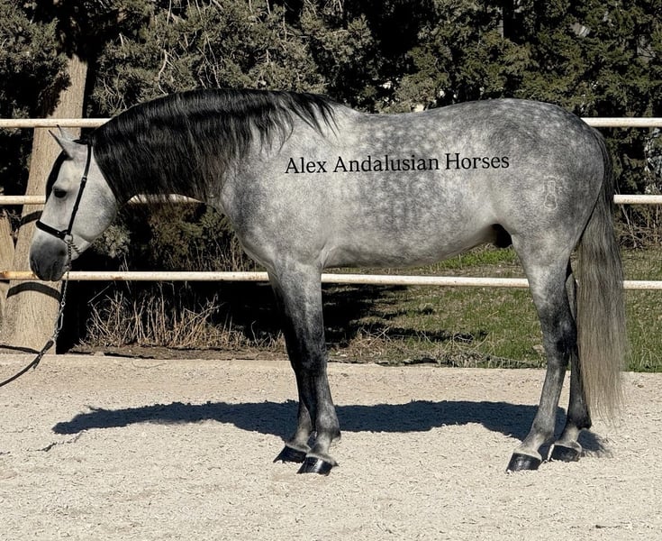 Andalusian stallion with full ANCCE papers. This stunning 6-year-old stallion stands at 16.1 hh. His temperament is very sweet and calm, making him the perfect match for amateurs and families. He is also ridden by children. He has competition experience in haute école, including basic riding, half-pass, Spanish walk, and piaffe. X-rays are available, although they are not recent. He is very safe and comfortable to ride. For more information, please contact us: WhatsApp: (+34) 657 314 412 Follow us on our social media channels. We organize vet checks, transportation, and quarantine.