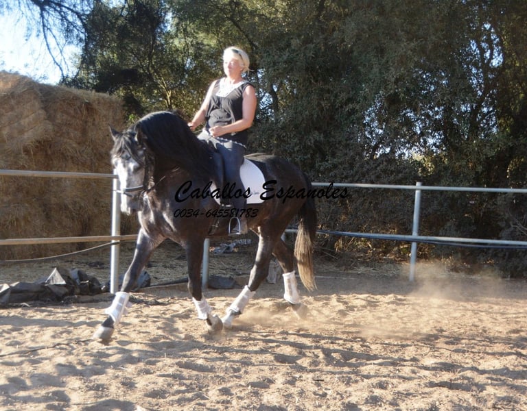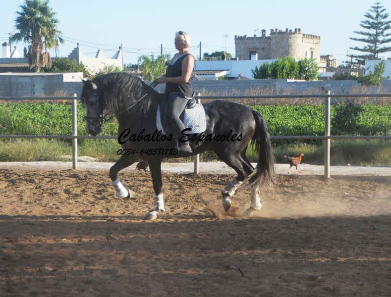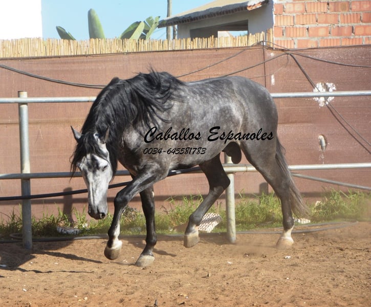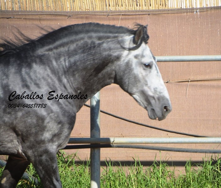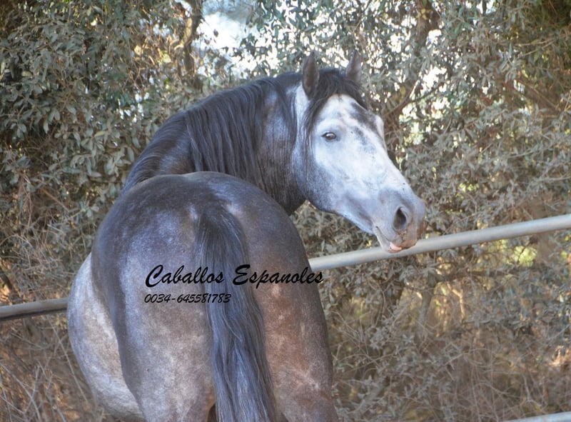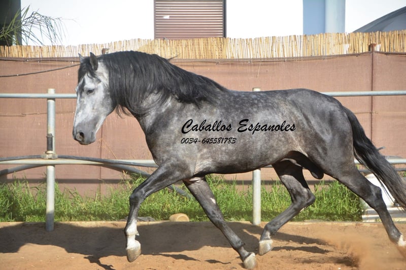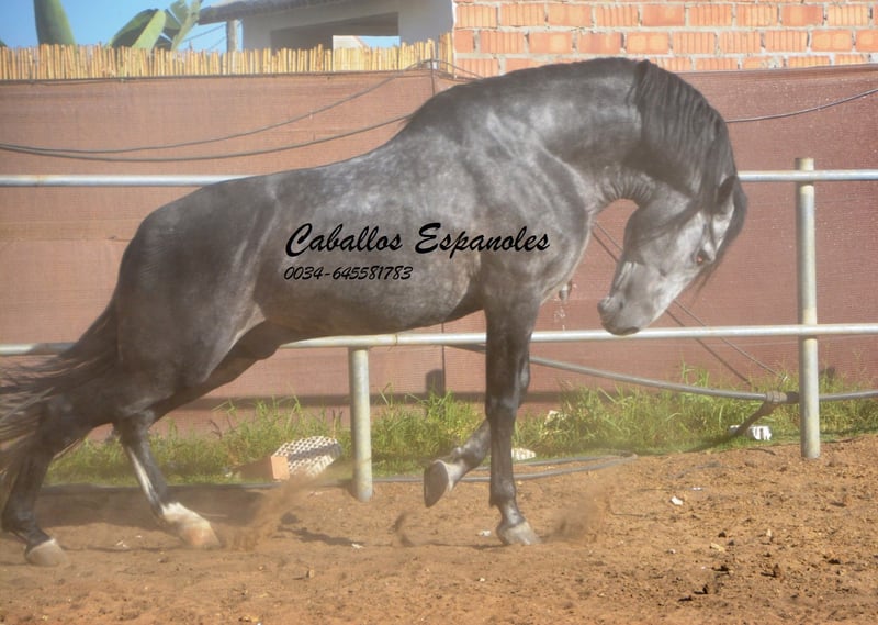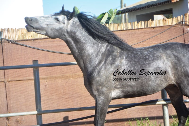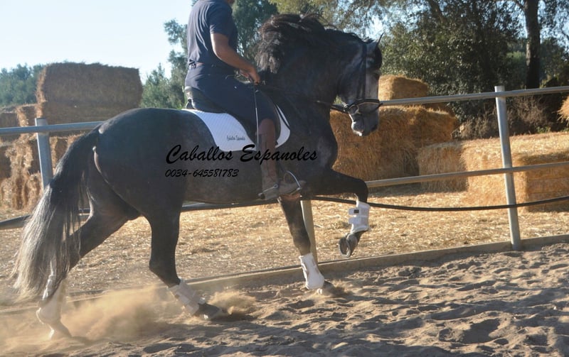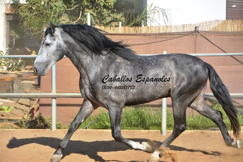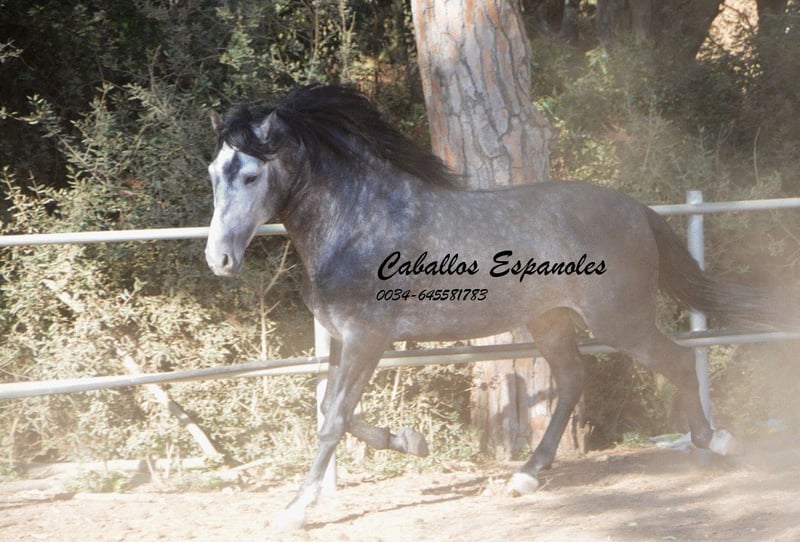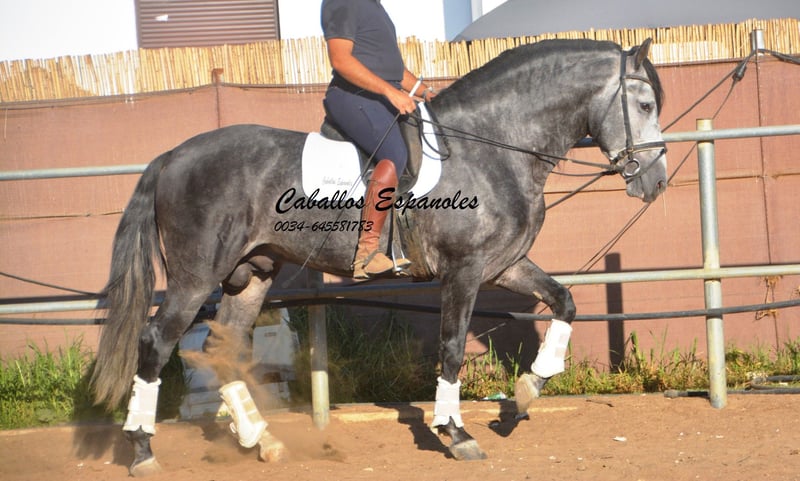 Un caballo PRE de tipo barroco, tal como uno imagina. Base sólida, apariencia clásica con una melena impresionante. Este magnífico semental destaca por su manejabilidad y su actitud. Muy cómodo en el asiento y fácil de llevar en el cuello. Con una excelente disposición para el trabajo, amigable y de trato sencillo. Está montado en los movimientos básicos, y se trabaja en laterales, piaffe y cambios de mano en galop. En el campo, es intrépido y ya ha participado en una Romería. Cuenta con tres buenos aires básicos. Una recomendación especial para el jinete de ocio ambicioso. El caballo se vende por encargo. Puede permanecer con nosotros en entrenamiento si se desea. Se organizará una inspección veterinaria en breve. Transporte internacional disponible.