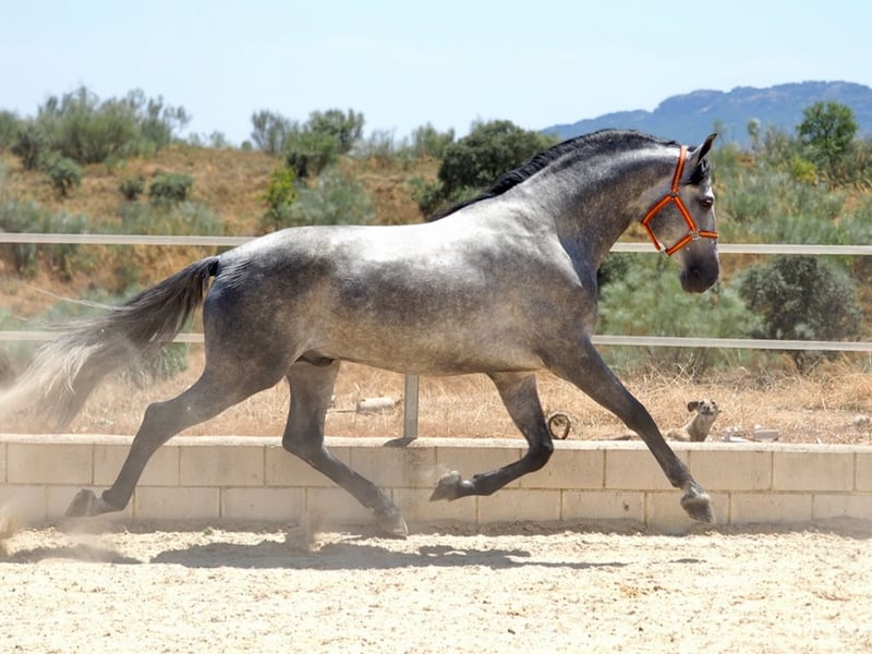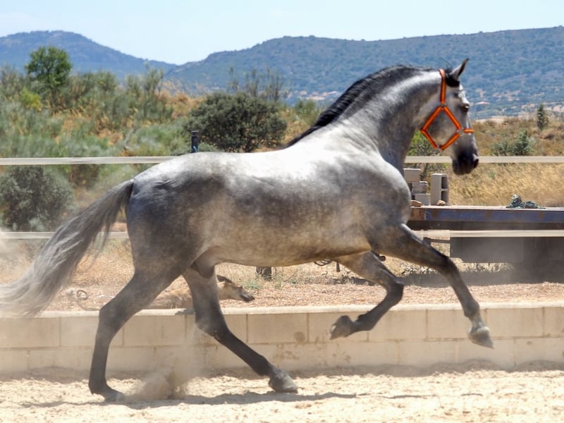 Przedstawiamy ogiera PRE urodzonego w 2018 roku, który, choć jest ujeżdżony na poziomie podstawowym, jest w idealnym momencie, aby kontynuować proces ujeżdżenia. Jest idealny dla kogoś, kto chce mieć konia o wyjątkowych ruchach. Jego kłus z dużą ekspresją kolana oraz dużą amplitudą i siłą jest wyjątkowy. Ponadto jest wolny od piro, więc nie ma ograniczeń mobilności podczas podróży po całym świecie.