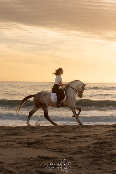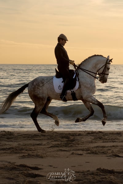 Beduino se trata de un caballo Español idóneo para un Amateur que quiera gozar de un ejemplar bello y funcional. Un caballo fácil de montar, agradable en el trato y en esa línea de caballos que caracterizan a la casa Guardiola Este ejemplar es idóneo para quién no tenga un gran presupuesto y quiera un caballo seguro, actualmente realiza cambios de pie, ejercicios laterales, reunido en el galope y cuenta con tres aires de calidad. "Beduino" es muy colaborador en el trabajo y serviría como un caballo versátil, bien para hacer ejercicios de doma y a la vez salir al campo a disfrutar de un paseo o ruta de fin de semana. Tenemos información veterinaria, y la pondríamos a su disposición. Ejemplar entero pero nunca ha cubierto y no es nada caliente, se podría castrar o usar de semental si se desea. No dude en consultar sin compromiso.