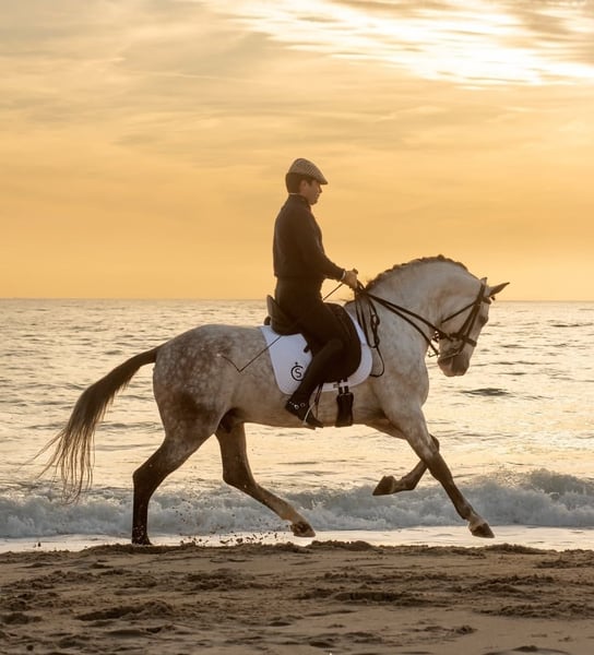 Beduino to hiszpański koń, idealny dla amatora, który chce cieszyć się pięknym i funkcjonalnym zwierzęciem. To koń łatwy w jeździe, przyjemny w obsłudze i reprezentujący tę linię koni, które charakteryzują dom Guardiola. Ten okaz jest odpowiedni dla osób z ograniczonym budżetem, poszukujących pewnego i stabilnego konia. Posiada trzy dobre jakościowo chody, wykonuje przejścia z nogi na nogę, ćwiczenia boczne, jest zbierany w galopie, piaf... "Beduino" jest bardzo współpracujący podczas pracy i sprawdzi się jako koń wszechstronny – zarówno do ujeżdżenia, jak i na wycieczki terenowe czy weekendowe wypady. Posiadamy dokumentację weterynaryjną, którą chętnie udostępnimy. Koń jest pełnoprawny, nigdy nie był użytkowany jako reproduktor, nie jest gorący, można go wykastrować lub używać jako ogiera, jeśli ktoś sobie tego życzy. Zapraszamy do kontaktu bez zobowiązań.