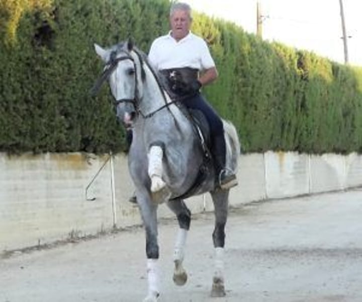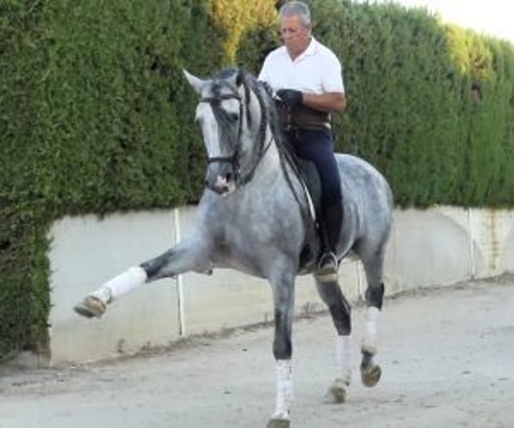 Ein edler und williger Partner, für Fortschritt mit Freude Dies ist ein Pferd mit echten Qualitäten für die hohe Schule, jedoch ohne die Spannungen oder Komplikationen, die oft auf diesem Niveau anzutreffen sind. Was Ihnen zuerst auffällt, ist seine Bereitschaft: immer aufmerksam, ob geritten oder am Boden. Er diskutiert nicht; er möchte verstehen und die Dinge richtig machen. Diese ruhige, großzügige Einstellung ist ein wahrer Gewinn für jeden Reiter, der Wert auf harmonisches und respektvolles Arbeiten legt. Derzeit führt er alle Seitwärtsbewegungen mühelos aus, macht fließende Übergänge vom Schritt zum Galopp, zeigt einen schönen spanischen Schritt und beginnt, die Piaffe am Boden zu lernen. Und über die Reitbahn hinaus ist er ebenso angenehm: Er liebt Ausritte, ist selbstbewusst und entspannt in offenen Räumen, während er mit seinem Reiter verbunden bleibt. Sein Training wurde mit Geduld und Konsequenz aufgebaut, und das zeigt sich. Dieses Pferd ist bereit, viel Zufriedenheit zu bieten, sei es für einen begeisterten Amateur oder für einen anspruchsvollen Reiter, der Finesse und Komfort in der täglichen Arbeit sucht. 🔹 Bei IberHorse wählen wir Iberische Pferde sorgfältig aus, damit jeder Reiter den Partner findet, der wirklich zu ihm passt. Nehmen Sie Kontakt mit uns auf, um einen Besuch zu vereinbaren – nichts kommt dem Gefühl gleich, ihn persönlich zu treffen.