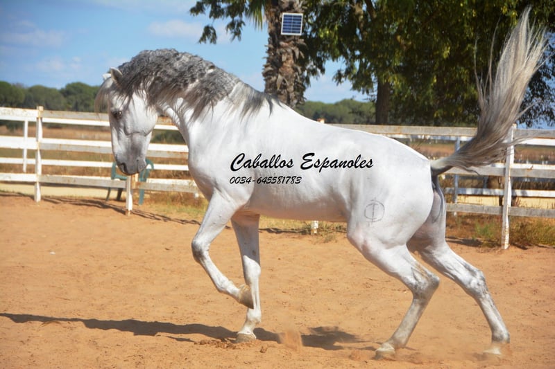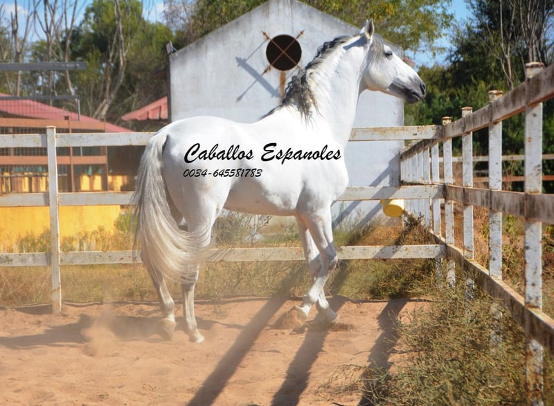 Este hermoso semental PRE con pedigrí presenta una apariencia barroca y elegante. Se encuentra sobre una base correcta y sólida. Está montado desde la base, tanto en el paddock como en el campo. Además, el semental ha sido también conducido en carro. En libertad y bajo la silla, muestra con gusto sus tres buenas y expresivas habilidades básicas. El caballo, un hermoso ejemplar gris, es un semental alegre y curioso, pero siempre bien educado y tranquilo. Cuenta con un excelente pedigrí, proveniente de la casa Eucalipto. Si está interesado, estaré encantado de proporcionar más información y organizar una visita. El caballo se vende por encargo. Puede permanecer en nuestra cuadra en régimen de adiestramiento. La revisión veterinaria puede organizarse a corto plazo. Transporte internacional disponible.