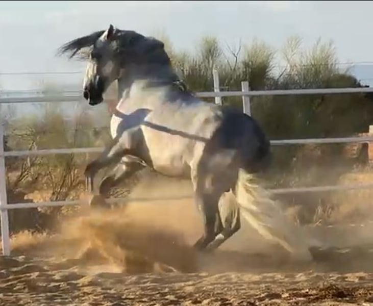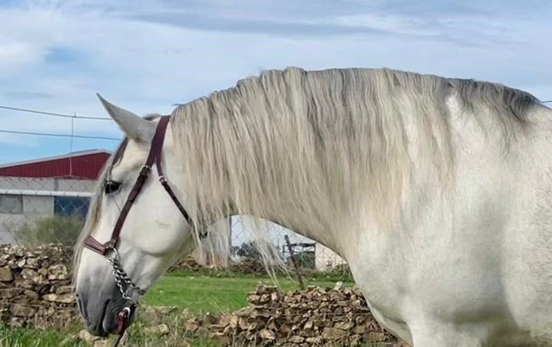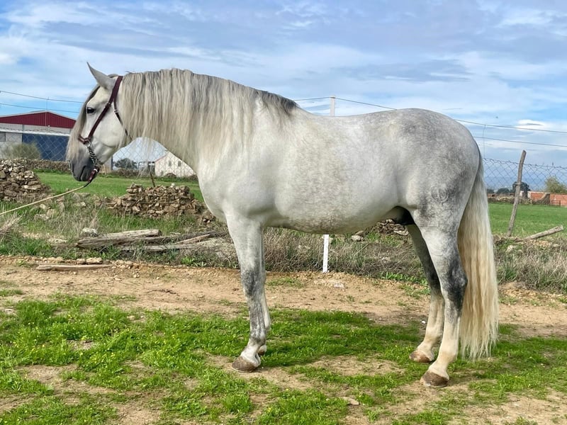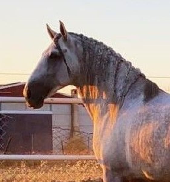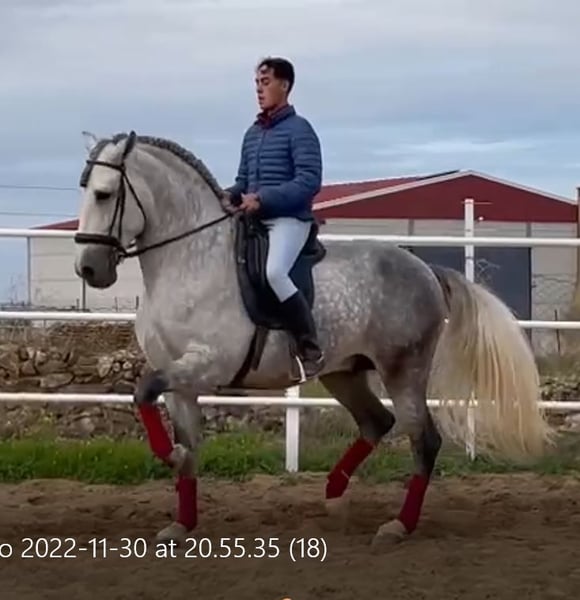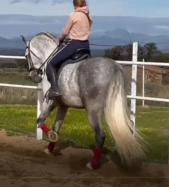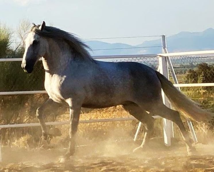 YEGUADA EL PALMERAL from Badajoz-Spain, is SELLING a great grey stallion, producing very good offspring with high morphological quality, breed characteristics, and movements, with exceptional nobility. Anyone can ride him, even those without riding experience. He passes all these traits to his offspring. UP TO DATE WITH ALL VACCINATIONS AND DEWORMED, he stands 1.72 meters at the withers, from the old PRE lines of Lopez Monix and Granda, lines with strong breed characteristics. He is trained, performing Spanish walk, piaffe, and participating in functional tests and morphological competitions. A Baroque horse with special beauty, featuring long, curly, and wavy mane and tail. He serves as a stallion, covering both by hand and freely in the herd of mares. A spectacular horse for leisure riding, morphological competitions, classical dressage, high school, etc. IF YOU WANT TO HAVE A GREAT PRE HORSE THAT IS SUITABLE FOR EVERYTHING, LEISURE, BREEDING, DRESSAGE, WITH HIGH QUALITY, STRONG BREED CHARACTERISTICS, AND MOVEMENTS, THIS IS YOUR HORSE. HE IS BEING SOLD BECAUSE HIS SON WILL BE KEPT AS A STALLION AT THE STUD FARM, AND HIS DAUGHTERS WILL REMAIN AS MOTHERS, SO THEY CANNOT BE BRED WITH THE FATHER. A HORSE THAT BUILDS A HERD, VERY, VERY NOBLE. CALL NOW BEFORE IT'S SOLD, IT'S WORTH IT.