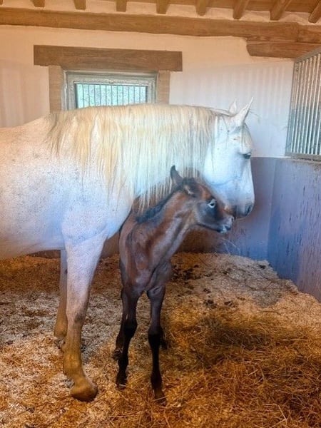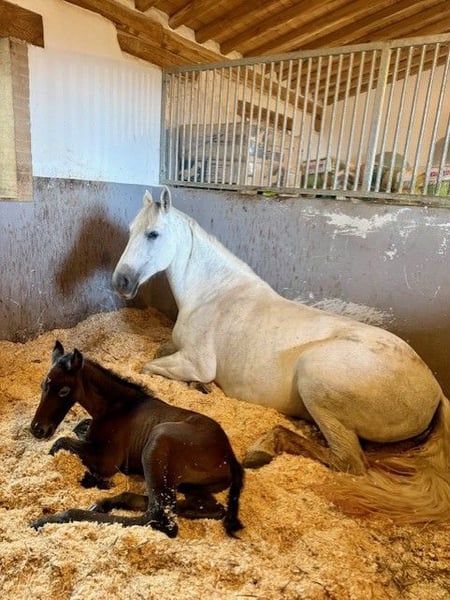 Zum Verkauf steht ein vielversprechendes PRE-Hengstfohlen aus sorgfältiger Zucht und besten Linien. Der junge Hengst wächst bei uns in Italien im Herdenverband auf und genießt eine artgerechte, naturnahe Aufzucht. Von Beginn an wird er liebevoll betreut und lernt alles, was er für ein ausgeglichenes und vertrauensvolles Pferdeleben benötigt. Er ist täglich im Kontakt mit: - anderen Pferden im Herdenverband - Menschen - landwirtschaftlichen Maschinen - Autos und verschiedensten Umweltreizen So entwickelt er sich zu einem nervenstarken, gut sozialisierten und menschenbezogenen Pferd. Seine Abstammung überzeugt auf ganzer Linie: Die Mutter ist eine gekörte PRE-Stute, der Vater ein gekörter PRE-Hengst mit zahlreichen Erfolgen im Dressursport. Bis zur Abgabe wird er selbstverständlich altersgerecht erzogen und beherrscht das Fohlen-ABC (Halfterführigkeit, Hufe geben, Umgang etc.). Die Abgabe erfolgt nach individueller Absprache im Alter von etwa 6 bis 12 Monaten.