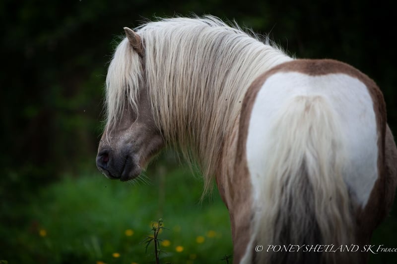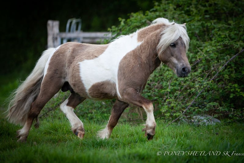 PACANNAN Superb Shetland colt with full papers registered with IFCE. Mushroom coat. Magnificent young pony, he will be ideal for leisure, companionship, and breeding (excellent lineage and conformation). Can also be sold for driving, in pair with his half-brother of the same coat: PÌOSAN SKYE. Registered professional breeding. Price displayed excluding VAT.