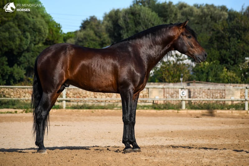 Dieser wunderschöne Pura Raza Española Hengst, geboren im Jahr 2019, besticht durch seine natürliche Eleganz und sein klassisches Erscheinungsbild. Mit einer Schulterhöhe von 1,64 m verfügt er über eine harmonische und funktionale Statur, die sowohl für die klassische Dressur als auch für die menorquinische Dressur ideal ist. Sein Ausbildungsstand ist mittel, er bewegt sich sicher im Schritt, Trab und Galopp und beherrscht seitliche Übungen sowie die Anfänge der Piaffe. Zudem zeigt er eine sehr gute Haltung beim spanischen Schritt. Im menorquinischen Grundgang arbeitet er ohne das sogenannte „bot“ und zeigt stets große Bereitschaft zum Arbeiten. Er hat an der ESPRE-Prüfung teilgenommen, sowohl in Morphologie als auch in Funktionalität, und überzeugt durch seine positive Einstellung. Mit einem edlen und kooperativen Charakter besitzt er eine natürliche Sensibilität, die ihn besonders empfänglich für den Reiter macht. Daher ist er ideal für jemanden, der sanft und respektvoll reitet, um eine besondere Verbindung auf Basis gegenseitigem Vertrauen aufzubauen. Er ist an das Leben in der Box gewöhnt, lebt zusammen mit anderen Pferden und Hengsten und geht regelmäßig auf die Bahn sowie ins Gelände, allein oder in Gesellschaft. Er zeigt sich kontaktfreudig gegenüber anderen Pferden, behält aber stets die Kontrolle und den Respekt. Das Pferd ist geimpft, entwurmt und befindet sich in Menorca. Wir organisieren den gesamten Verkaufsprozess, inklusive tierärztlicher Untersuchung, Dokumentation und internationalem Transport. 📩 Kontaktieren Sie uns für weitere Informationen, Fotos und Videos. Viele Grüße!