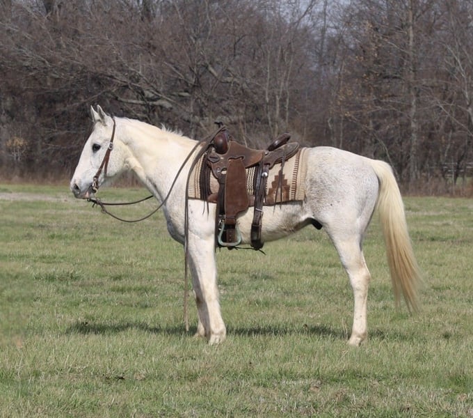 "AVAILABLE ON ONLINE HORSE AUCTION AT www DOT MagicHorseAuction DOT com BIDDING OPEN NOW thru TUESDAY | APRIL 28TH! BUY IT NOW AVAILABLE! *Final price will be determined on auction site* CONSIGNOR CONTACT INFO: Mitch Titus 217-549-3803 LOCATION: Charleston, IL " "🔥 Meet Popper – The Pony Everyone Wishes They Had 🔥 If you’ve been searching for that one pony who checks all the boxes — safe, seasoned, and still fun — Popper is your guy. Standing a solid 14 hands, this eye-catching grey Quarter Pony isn’t just another pretty face. Popper is the kind you can trust to take care of his rider, whether it’s a kid just learning the ropes or an adult wanting a dependable partner to get the job done. 💥 What makes Popper special? Trail-Proven: Quiet, confident, and sure-footed. He’ll go wherever you point him — through water, over logs, and down the toughest paths without hesitation. Ranch Ready: Knows a hard day’s work and doesn’t blink. Whether it’s checking fences or moving cattle, Popper is all business when it’s time to work. Safe for All Ages: Gentle enough for beginners, steady enough for parents to feel confident, and still enjoyable for experienced riders. Easy Keeper: Good-minded, easy to handle, and the same horse every time you pull him out. No surprises. Popper is the kind that’s getting harder to find — honest, broke, and dependable with just the right amount of personality to keep things fun. 🏇 Whether you need a family horse, a dependable ranch partner, or a trustworthy trail companion, Popper is ready to be your go-to. 📩 "