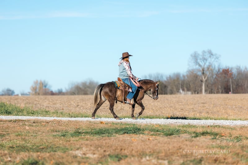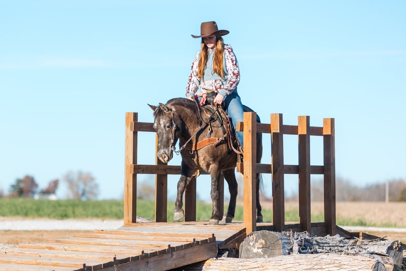 🎁 𝐈𝐍 𝐓𝐈𝐌𝐄 𝐅𝐎𝐑 𝑪𝒉𝒓𝒊𝒔𝒕𝒎𝒂𝒔 🎁 Happening now thru TUESDAY | DECEMBER 9th - Available EXCLUSIVELY on Ponybid's website! For more details and to register visit: www.Ponybid.com CONSIGNOR CONTACT: Jones Family and Versatility Horses 618-535-9966 LOCATION: Lewistown, IL BREED: Quarter Pony REGISTERED: No COLOR: App HEIGHT: 48” AGE: 8 GENDER: Gelding Geronimo looks like he marched straight out of a cartoon and into real life and that’s exactly why everyone falls in love with him. This eight-year-old, 48-inch Quarter Pony has one of the most unique Appaloosa coats you’ll ever see. Kids point, adults grin, and everyone immediately asks, “What’s his story?” He’s unforgettable in all the best ways. Geronimo has been the barn celebrity since the day he arrived. His curious, charming personality makes him the pony everyone wants to pet, ride, and sneak treats to. He’s gentle enough that even the tiniest, most timid kids feel safe around him, yet he walks, trots, and lopes with the confidence and style of a full sized horse. He handles like one, too this is the kind of pony that turns kids into lifelong horse lovers. He’s been on countless trail rides, shown locally, and packed little riders in lead-line. He is trained to lay down on command, and he’s as easy-going and user-friendly as they come: catch him anywhere, clip him, load him, bathe him, shoe him he’s good for all of it. He’ll ride out in a group or head out alone without hesitation. He’s been used around a rope, dragged logs, and even roped the dummy like he’s 15 hands tall and auditioning for a ranch horse calendar. And yes he’s stout and steady enough that a small adult can climb on and enjoy him, too. (And trust me, you’ll want to.) Ponies like Geronimo don’t come around often. He’s honest, well-handled, well-trained, and has had the right kind of hands on him his whole life. He has the heart, the education, and the personality that are nearly impossible to find in a pony his size. It won’t be easy to let him go Geronimo has been a source of daily smiles, laughter, and pure joy for us. But we’re excited for the lucky kid who gets to call him theirs next. This little cartoon character has a gift for capturing hearts, and we can’t wait to see the story he writes for his next family.