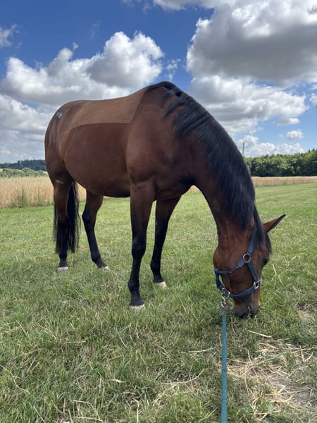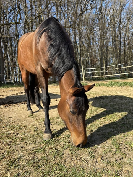 Jolie jument Quarter Horse de quatre ans, avec papiers, cherche une nouvelle famille aimante. En raison de ses papiers, elle est intéressante non seulement comme cheval de compagnie, mais aussi comme poulinière. Elli a malheureusement subi une déchirure du ligament croisé suite à un accident en pâture, qui a été traitée chirurgicalement. Lors d'une seconde opération, des processus épineux rétrécis au niveau du dos (spines embrassées) ont également été traités. Elle n'est donc PAS un cheval de randonnée. Des promenades et du travail à la longe sont toutefois envisageables. Elli s'intègre bien dans le groupe et est compatible avec d'autres chevaux. Elle ne sera pas confiée à un marchand ! Mon souhait est qu'elle trouve une famille formidable où elle pourra rester. Je ne la confie qu'à des personnes de confiance. Prix : 4000 € VB Localisation : 56814