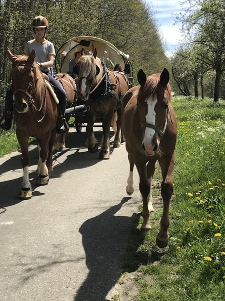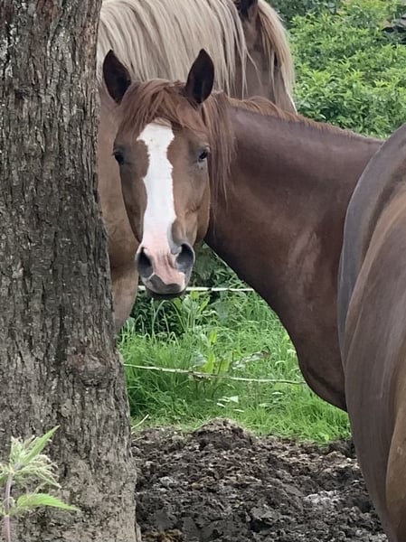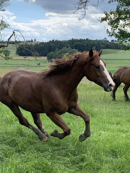 Cherry est née chez nous, sur le Brennesselhof - Bodensee.de. Elle a maintenant cinq ans et est prête à être formée dans toutes les disciplines. À l'origine, nous avions prévu de l'éduquer nous-mêmes pour qu'elle devienne la monture de notre plus jeune, mais malheureusement, il a perdu tout intérêt. Elle est encore au stade de jeune cheval, mais elle a déjà vécu bien plus que la plupart des poulains de pâture. Nous l'avons souvent monté, et elle a également participé à des sorties en voiture, ce qui lui a permis de voir beaucoup de choses. Sa mère est une jument de race Welsh-C mesurant 148 cm, originaire du Pays de Galles, que vous pouvez rencontrer ici. La maman a été monté en concours de saut d'obstacles chez son ancien propriétaire, et nous la montons en loisir, notamment en équitation western, et elle est également attelée. Le père est un étalon Paint, inscrit au stud-book. Il vit à environ 30 minutes, près d'ici, et peut être visité si souhaité. Cherry est extrêmement curieuse, proche de l'humain, volontaire, joyeuse, affectueuse et câline. Elle est, selon son âge, un peu turbulente, mais après une première phase d’énergie, elle devient rapidement sage et claire d’esprit. Jusqu’à présent, elle n’a connu que le travail en liberté et a souvent été manipulée à la main. Je peux tout à fait l’imaginer en cheval western, elle possède toutes les qualités et l’apparence pour cela, mais une formation à l’anglaise serait également envisageable. Elle atteindra sa taille adulte dans un an, estimée à environ 56-58 cm. Elle développe actuellement une « quarte arrière » :) et devient plus musclée. Elle n’a jamais été malade. Elle a des petits sabots durs et ronds, des jambes solides, des allures agréables avec une bonne impulsion et une arrière-main bien engagée. C’est un petit cheval en bonne santé, élevé en compagnie de poulains (avec deux foals de trait nordique) et en troupeau. Elle est ferrée et se laisse charger facilement. Jusqu’à présent, elle n’a pas eu de mauvaises expériences et possède une grande confiance envers l’humain. Nous souhaitons pour elle un cavalier ou une cavalière ambitieux(se), qui prendra plaisir à l’éduquer patiemment. La pension en paddock avec compagnie est une condition essentielle. Nous serions ravis de recevoir une candidature détaillée, expliquant comment Cherry pourrait évoluer chez vous et quels sont vos projets avec elle. Elle peut être visitée à tout moment. PLACE AU PRIX :)