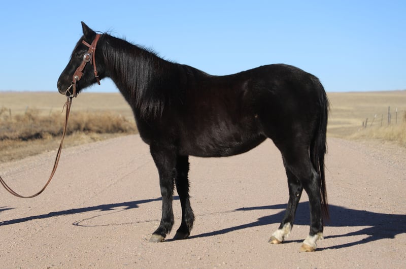 "AVAILABLE ON ONLINE HORSE AUCTION AT www DOT MagicHorseAuction DOT com BIDDING OPEN NOW thru TUESDAY | MARCH 3RD! BUY IT NOW AVAILABLE! *Final price will be determined on auction site* CONSIGNOR CONTACT INFO:Oly Edmiston #970-556-4820 LOCATION: COLORADO" Midnight is a good natured blue roan quarter pony mare. At nine years old, she is prime age. She has been a favorite here on our ranch, calving and moving cows. She is a quiet and confident trail partner in the mountains and on municipal trails. Midnight is smooth in all her gaits and happy to lead, follow, or be anywhere in between on the trail. She rides out alone on the trail or checking cows, and has done so with each of our older kids aged 9, 12, and 14. Midnight has drug calves at brandings and roped calves for tagging and doctoring. She has also head and heeled yearlings. Midnight is in on consignment with us. Her owners are selling her to cover medical bills. They said that midnight is a very fine buggy mare and good to drive anywhere. We have not had the occasion to hitch her but may have video before the sale is over (weather permitting). Midnight gets along well in the herd and is vet and farrier approved. She loads and hauls well, and backs out of the trailer. Shipping is available. Call for more information or to set up a time to meet her at home near Nunn, CO. 970-556-4820