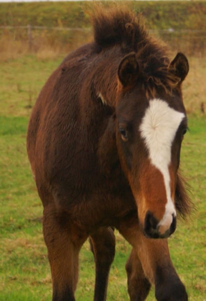 Sympathisches Quarter Pony Hengstfohlen, Dunkelbraun mit spots, Vater: Paint Horse Kingsley n jills wood, Mutter: Deutsches Reitpony von Kennedy WE, das Fohlen hat komplette Papiere, Pass vom ZSSE, wächst mit anderen Fohlen zusammen auf, aufgeschlossener kleiner Herzensbrecher mit markanter Blesse und einem herzförmigen Abzeichen am Hals, leichtfüßige grosse Bewegungen